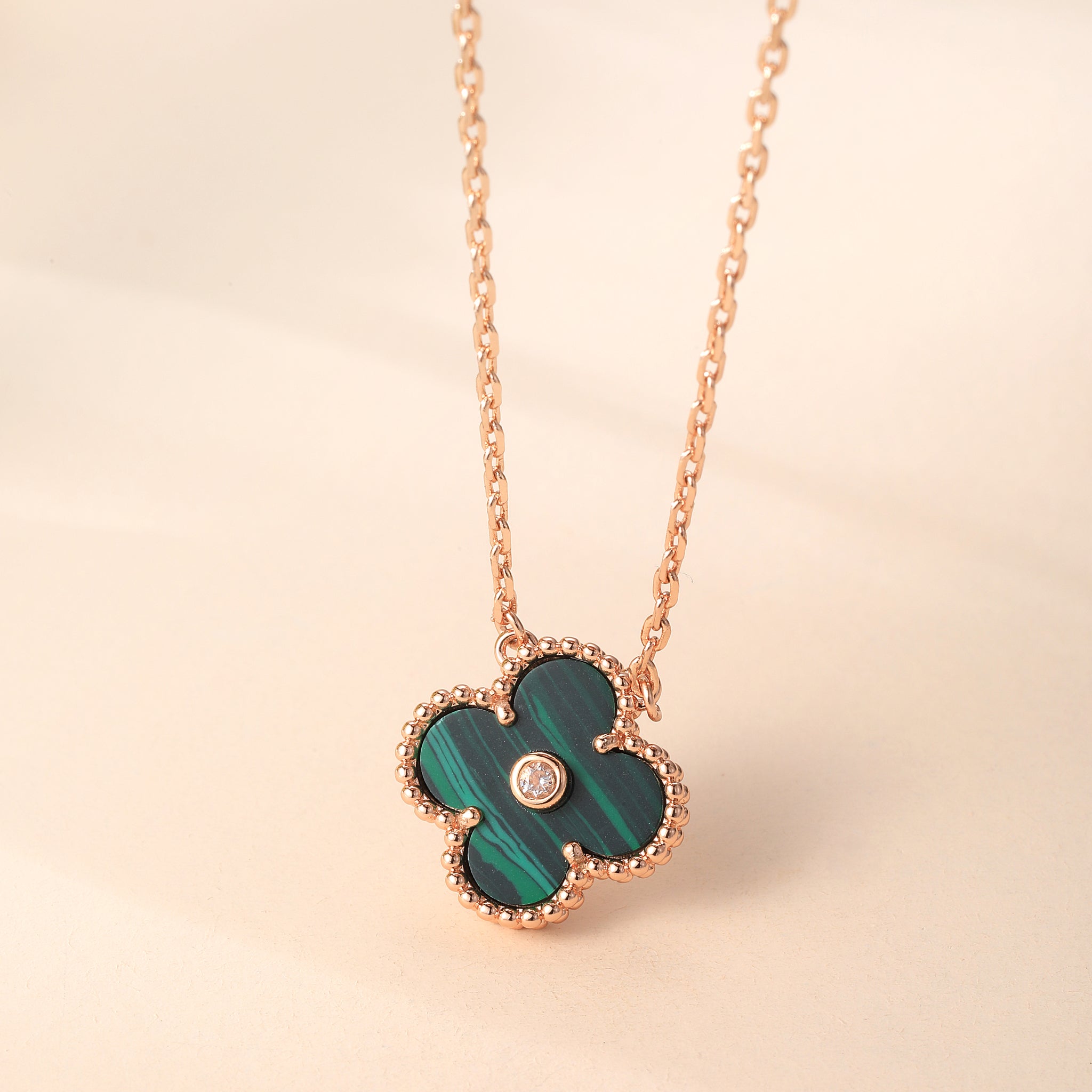 Unit price perRose Gold Plated Sterling Silver Malachite & Cubic Zirconia Four - Leaf Clover Pendant Necklace (0.3oz)