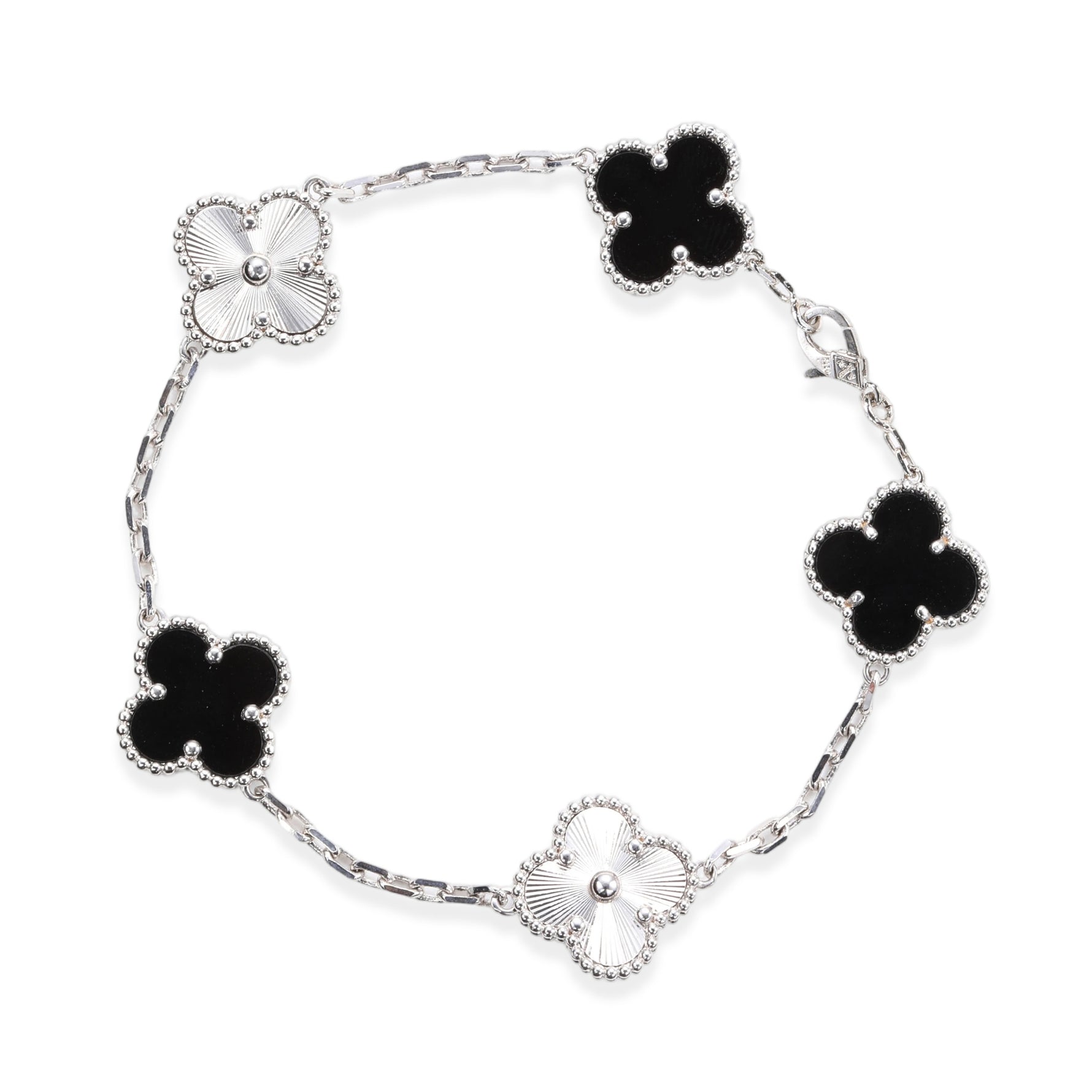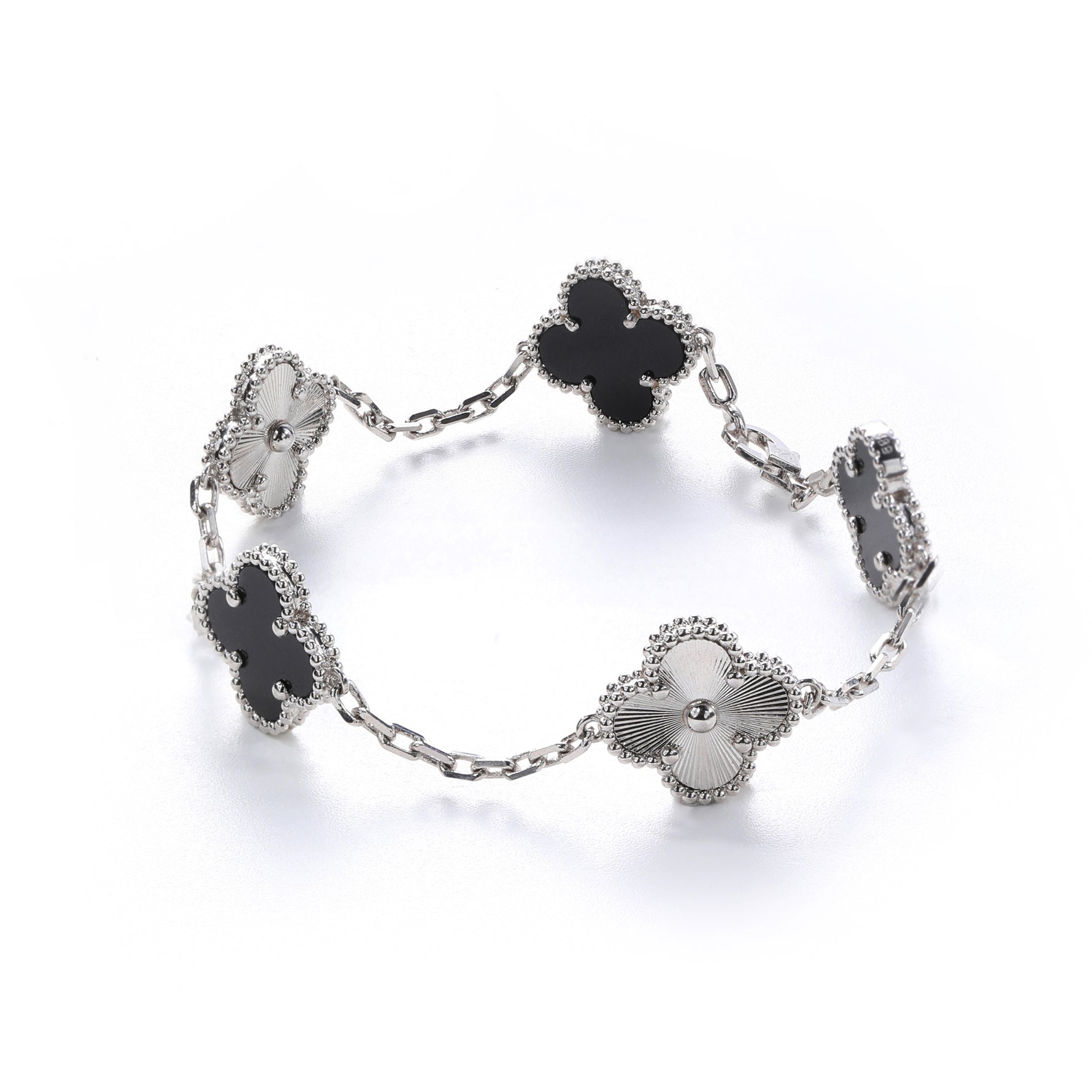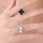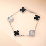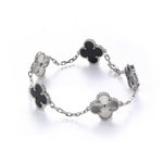 Sterling Silver Black Four - Leaf Clover Bracelet(7.48inch,0.3oz)