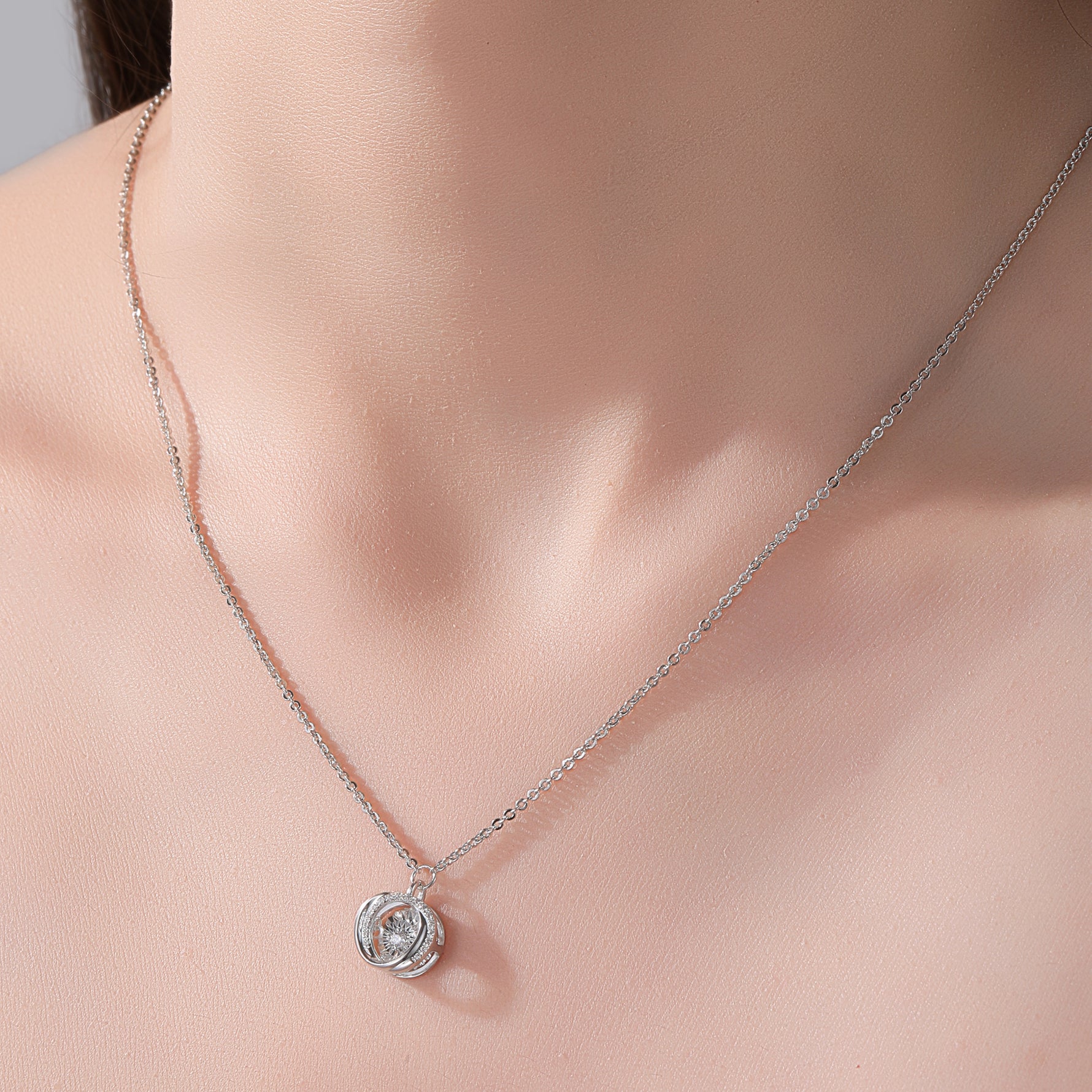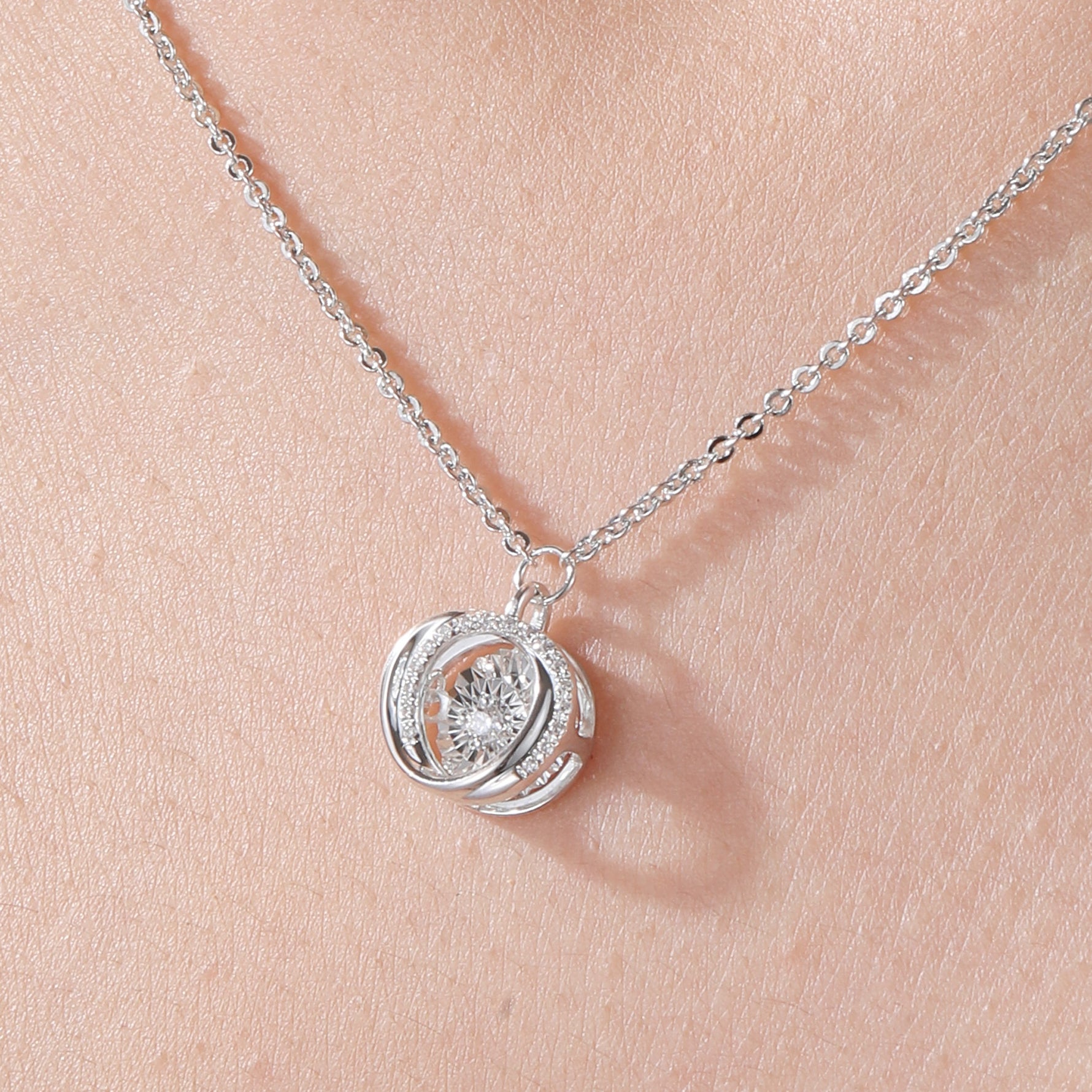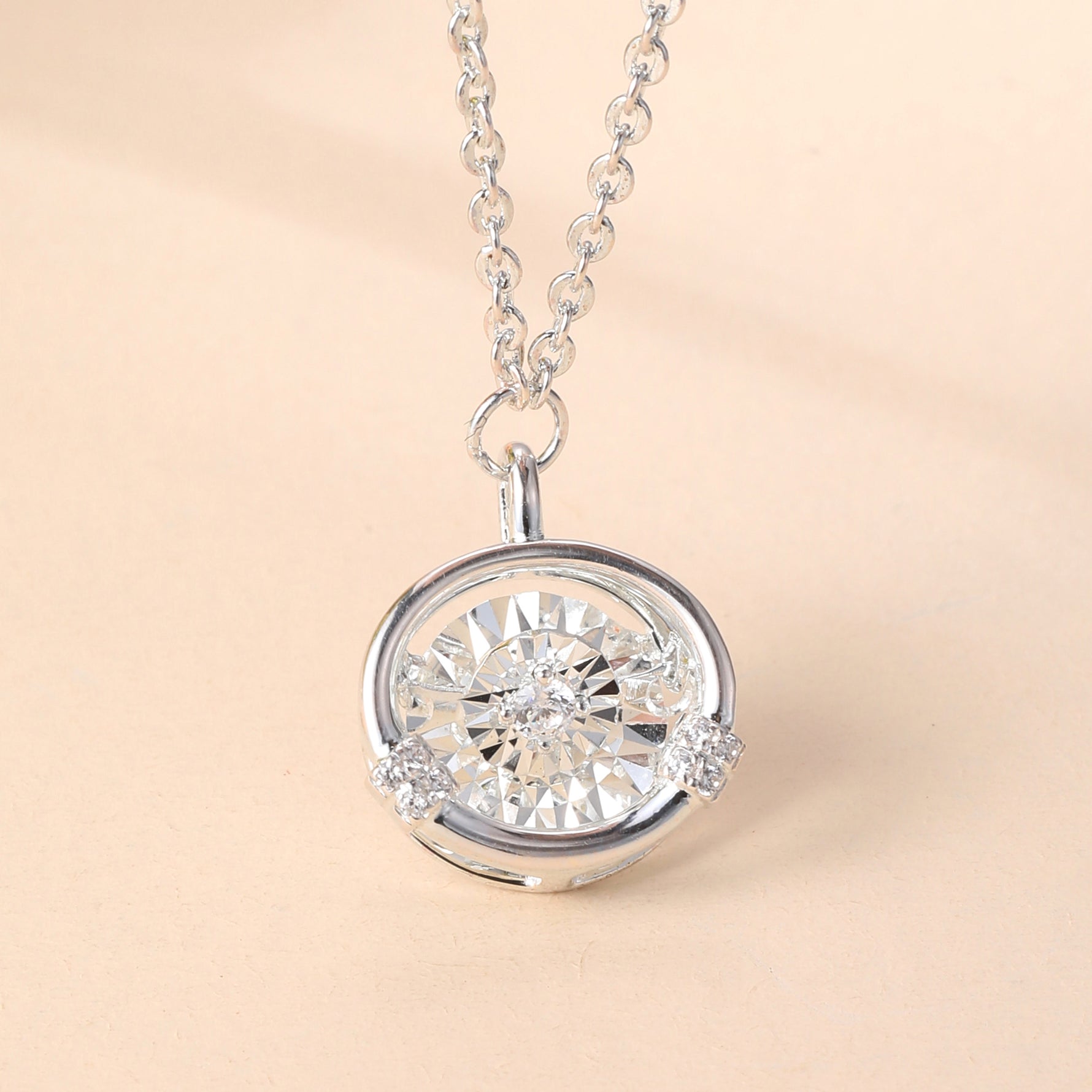 Sterling Silver Cubic Zirconia Circular Sparkle Dancing Diamonds Pendant Necklace