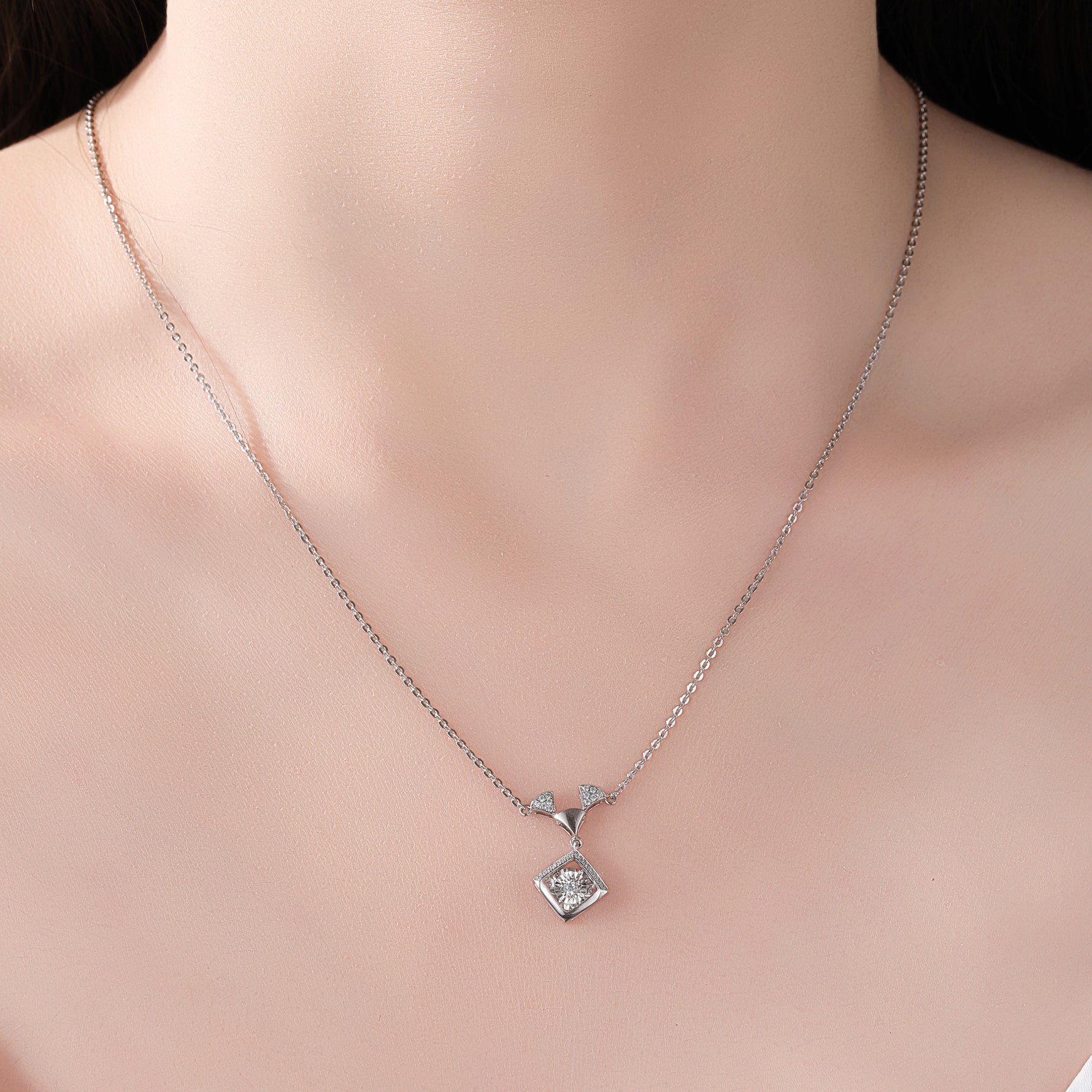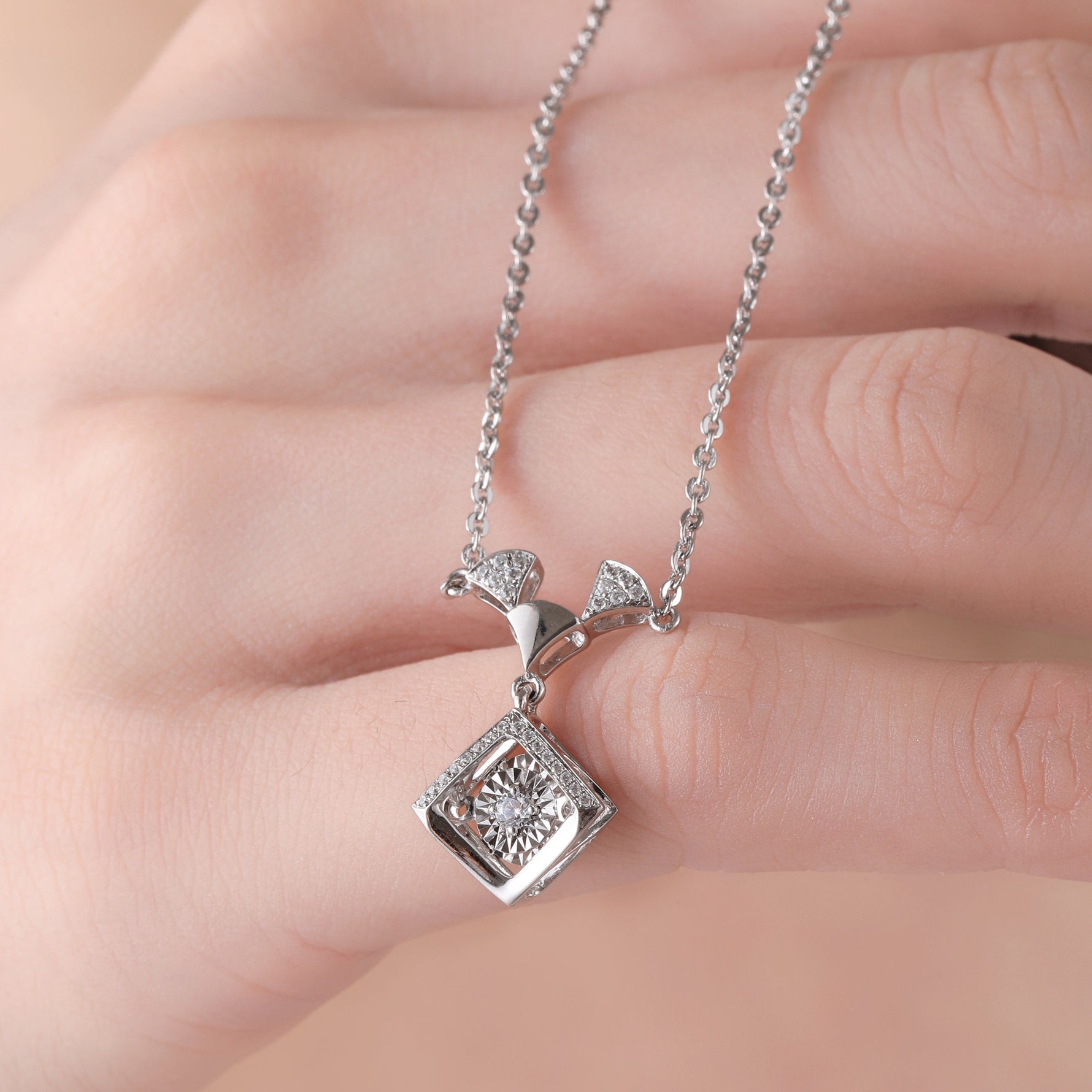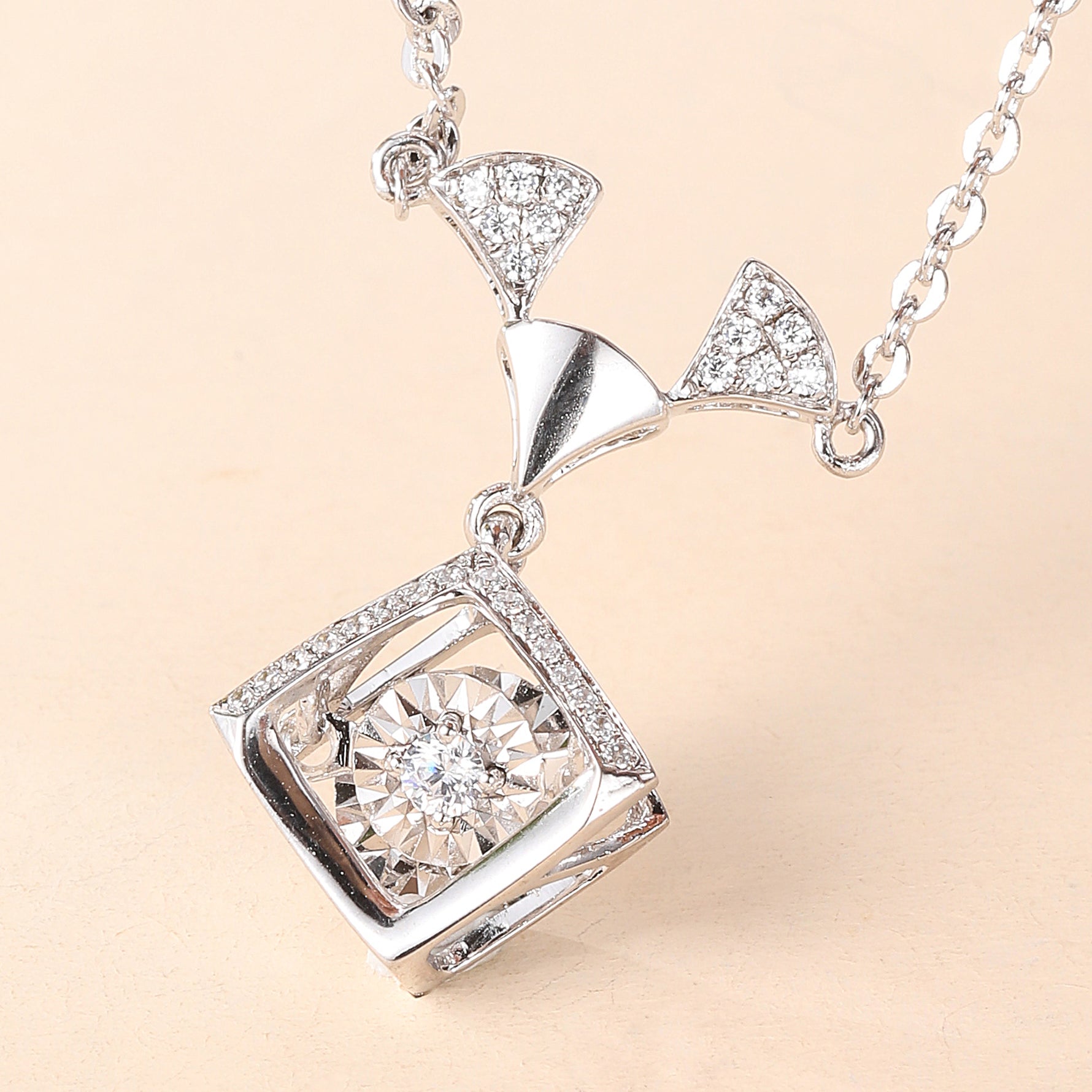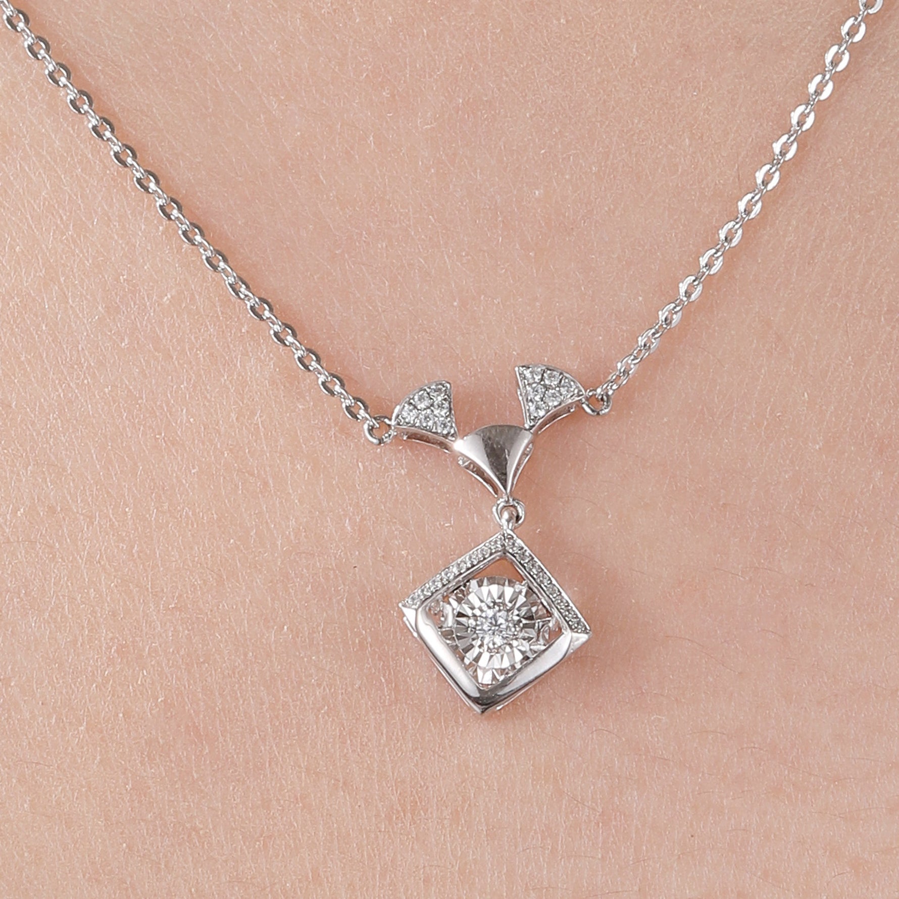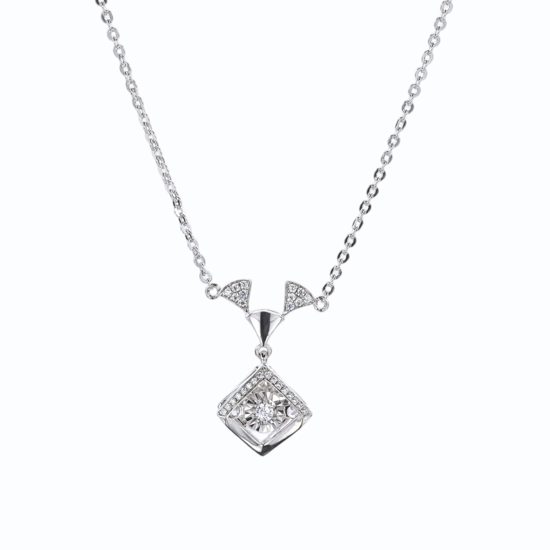 Sterling Silver Cubic Zirconia Geometric Sparkle Pendant Necklace