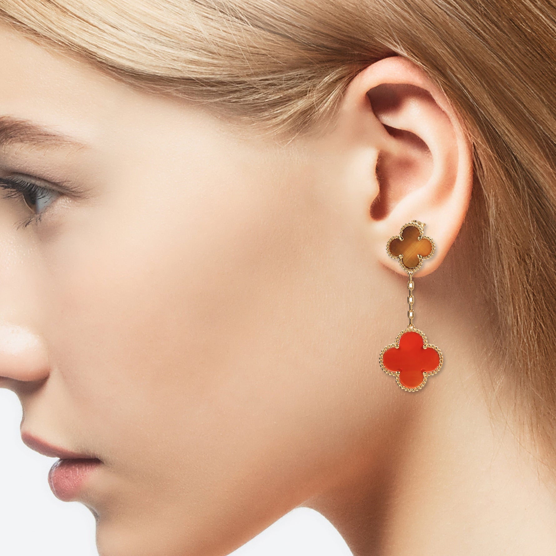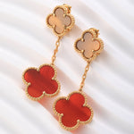 18K Gold Plated Sterling Silver Four - Leaf Clover Dangle Earrings(0.36oz)