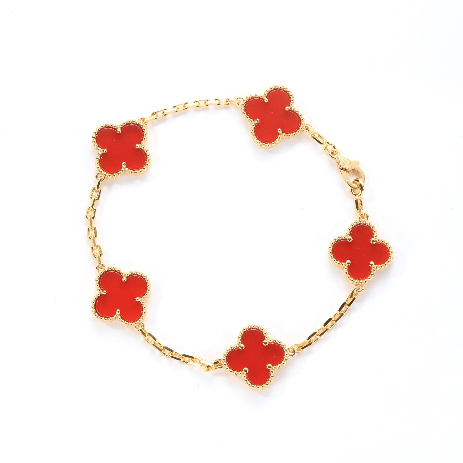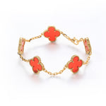 18K Gold Plated Sterling Silver Red Onyx Four - Leaf Clover Bracelet(7.48inch,0.3oz)