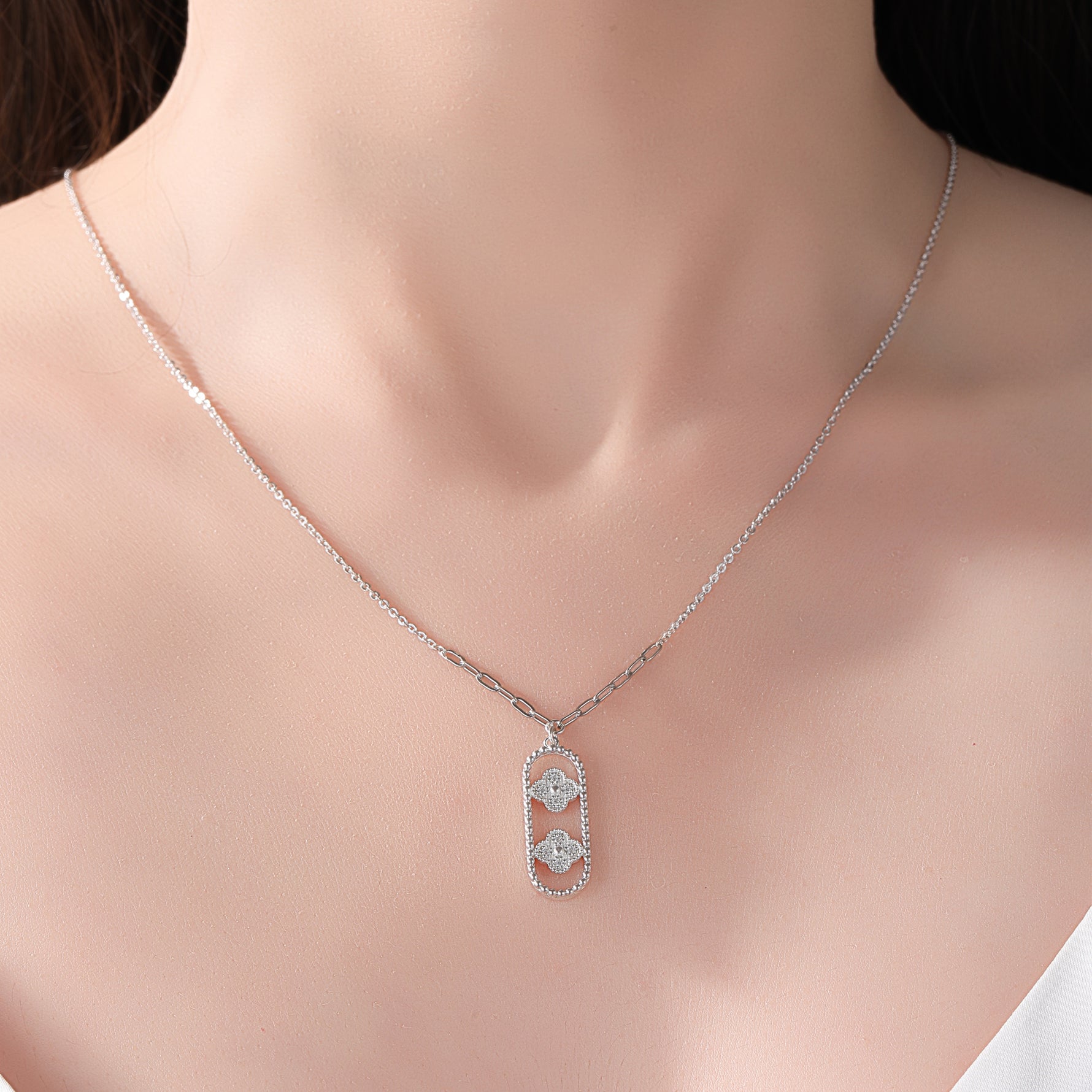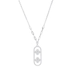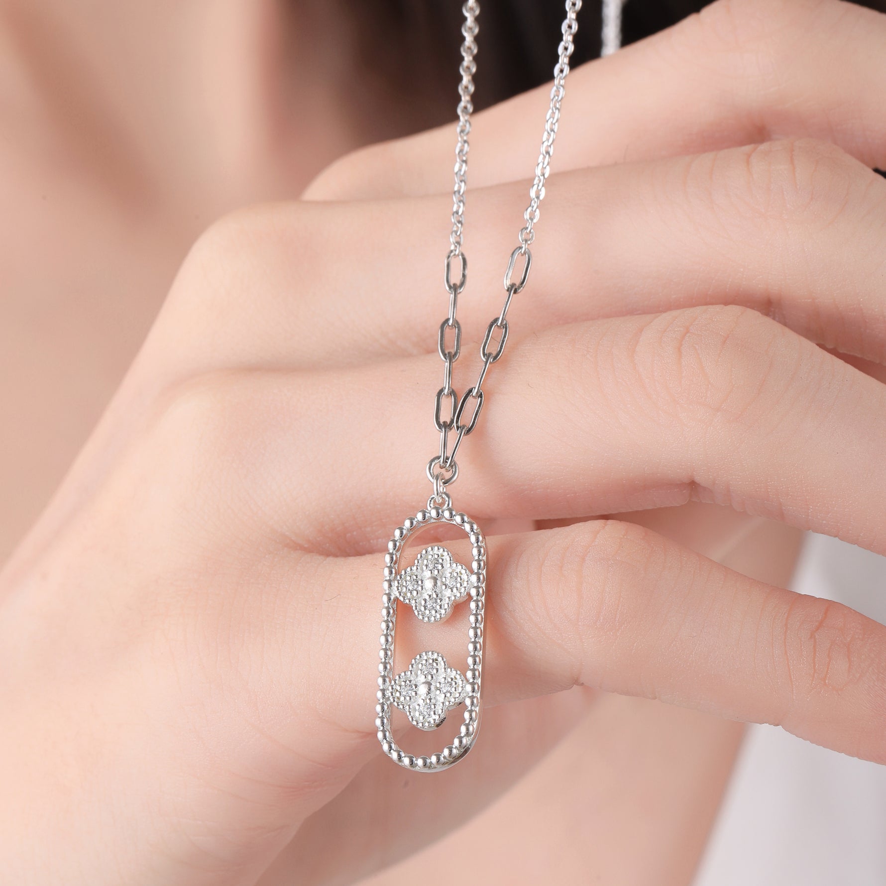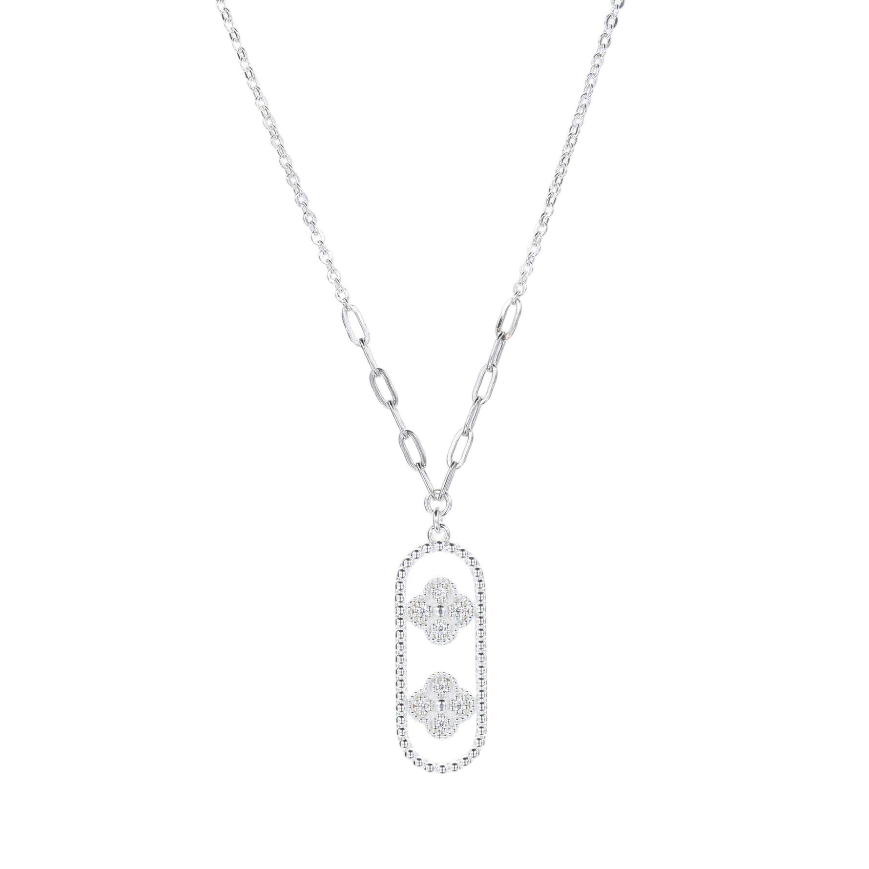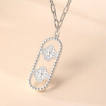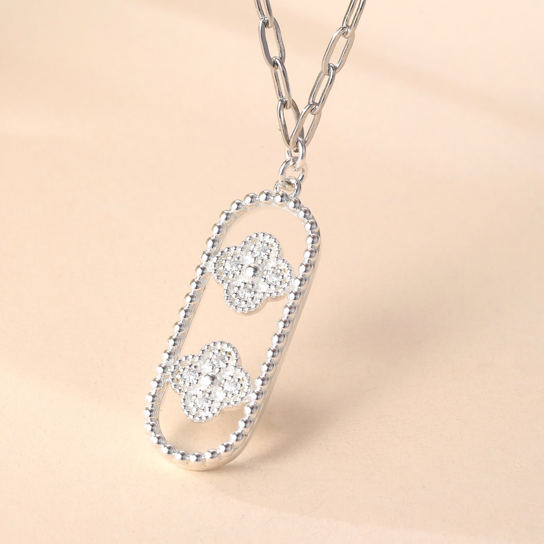 Sterling Silver Cubic Zirconia Embellished Four - Leaf Clover Oval Pendant Necklace