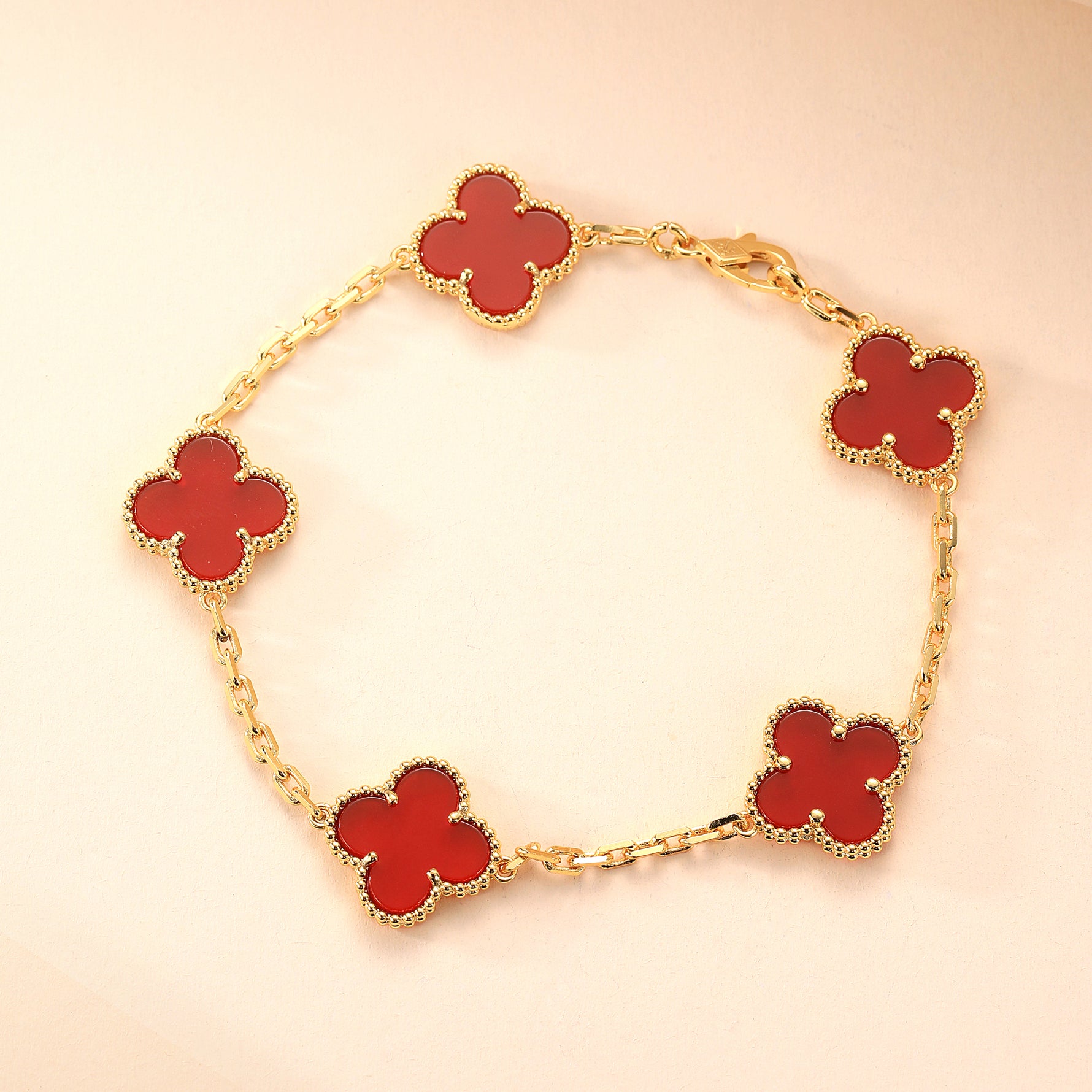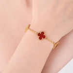 18K Gold Plated Sterling Silver Red Onyx Four - Leaf Clover Bracelet(7.48inch,0.3oz)