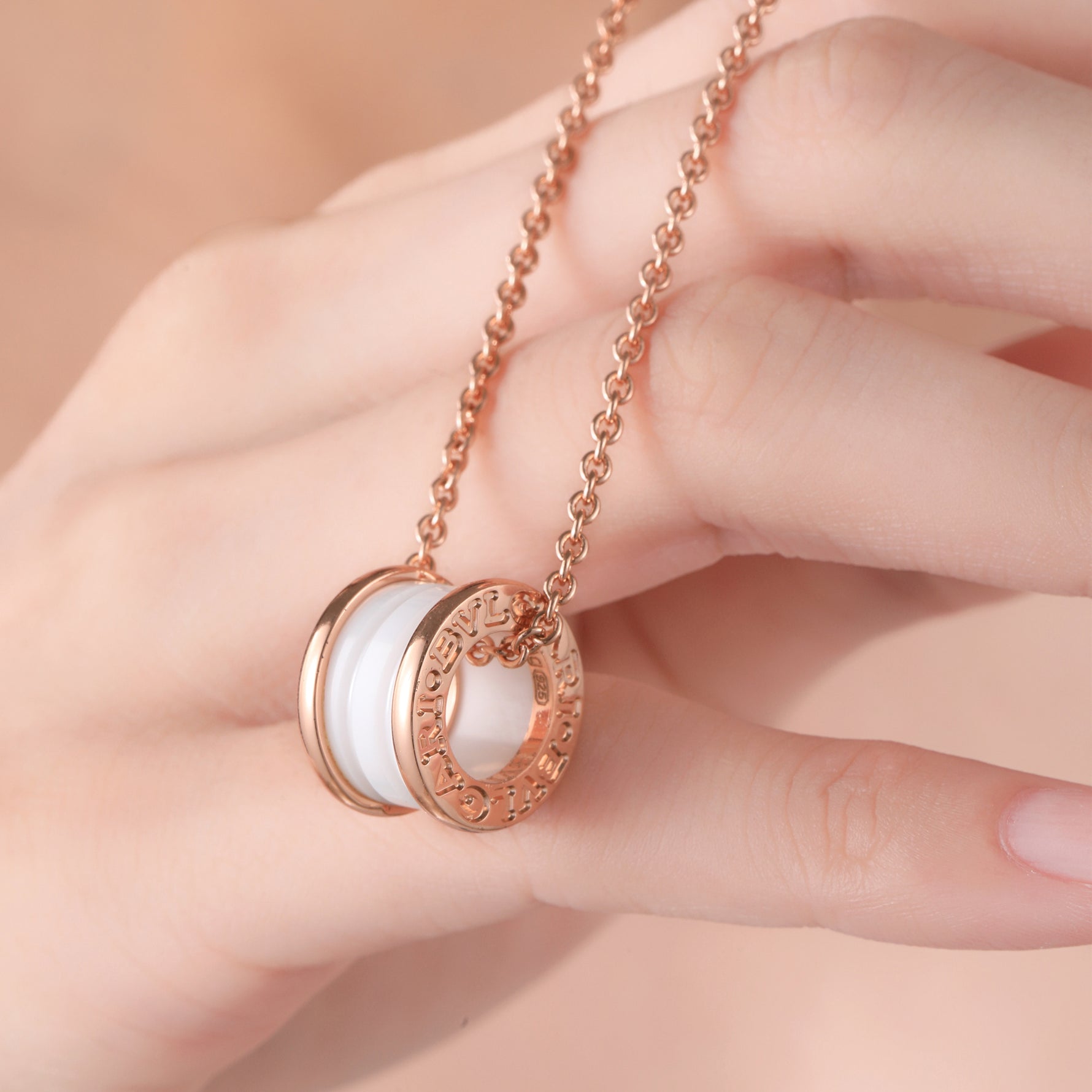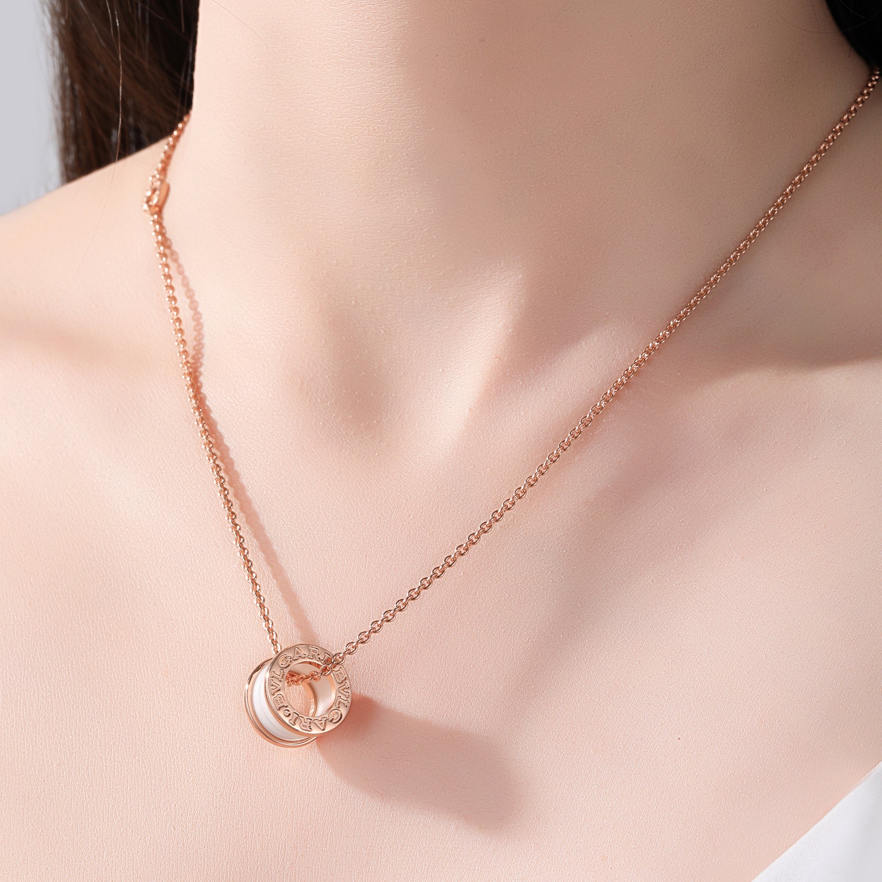 Unit price perSterling Silver Cubic Zirconia Embellished Double - Loop Logo Pendant Necklace