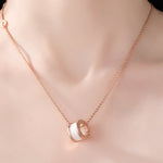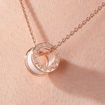 Rose Gold Plated Sterling Silver Cubic Zirconia Accent Circular Pendant Necklace