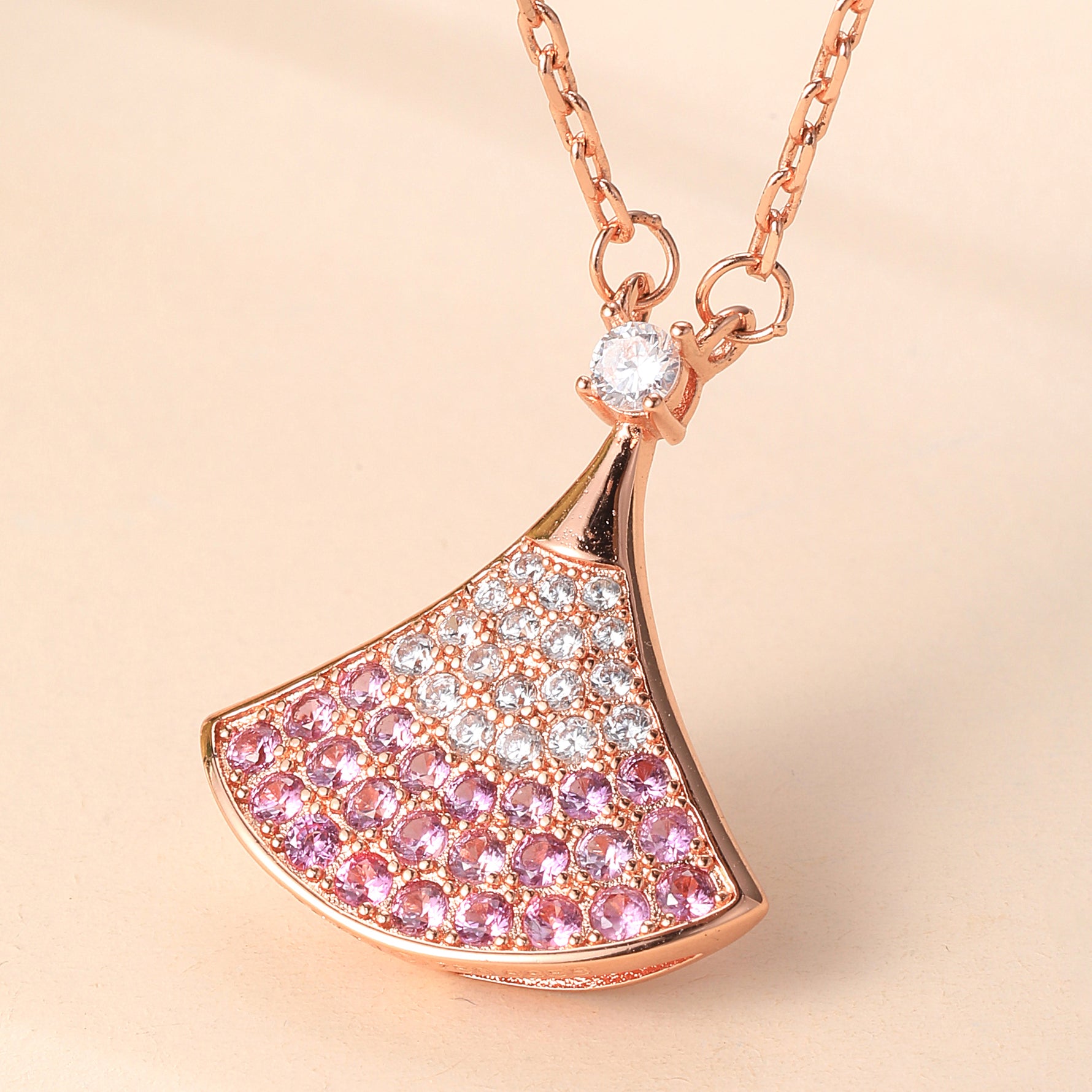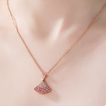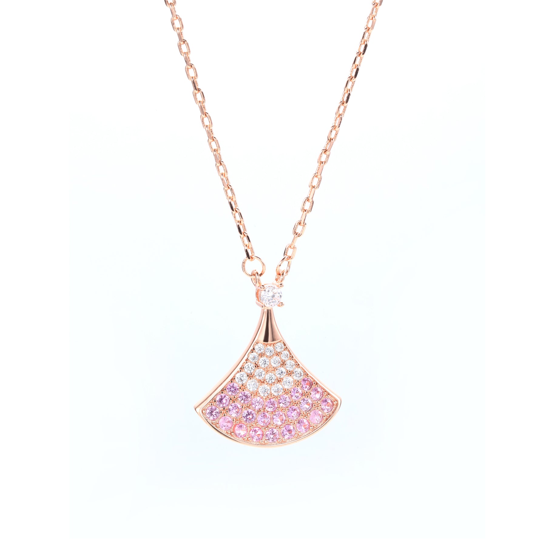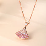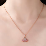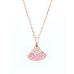 Rose Gold Plated Sterling Silver Ombre Pink Cubic Zirconia Fan - Shaped Pendant Necklace