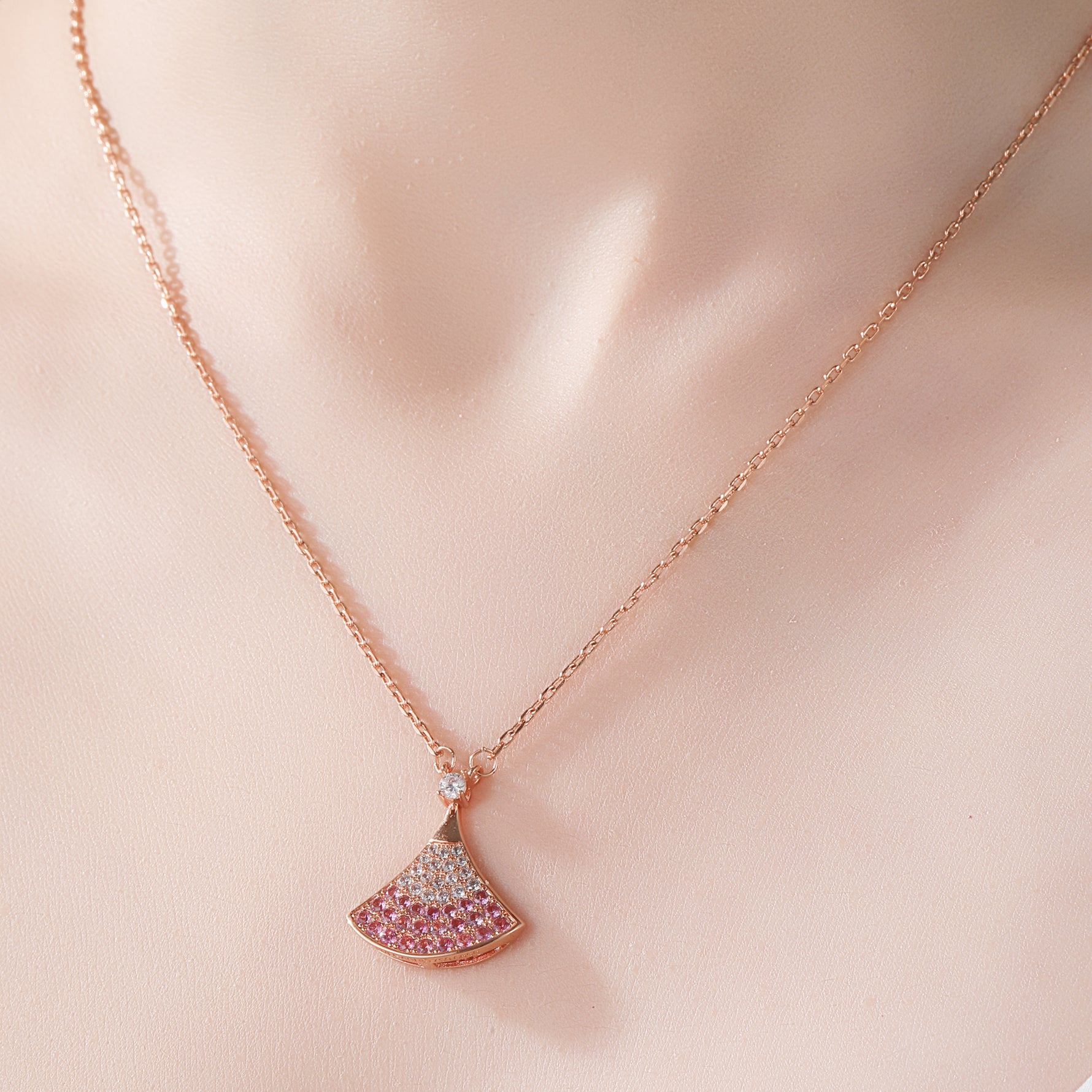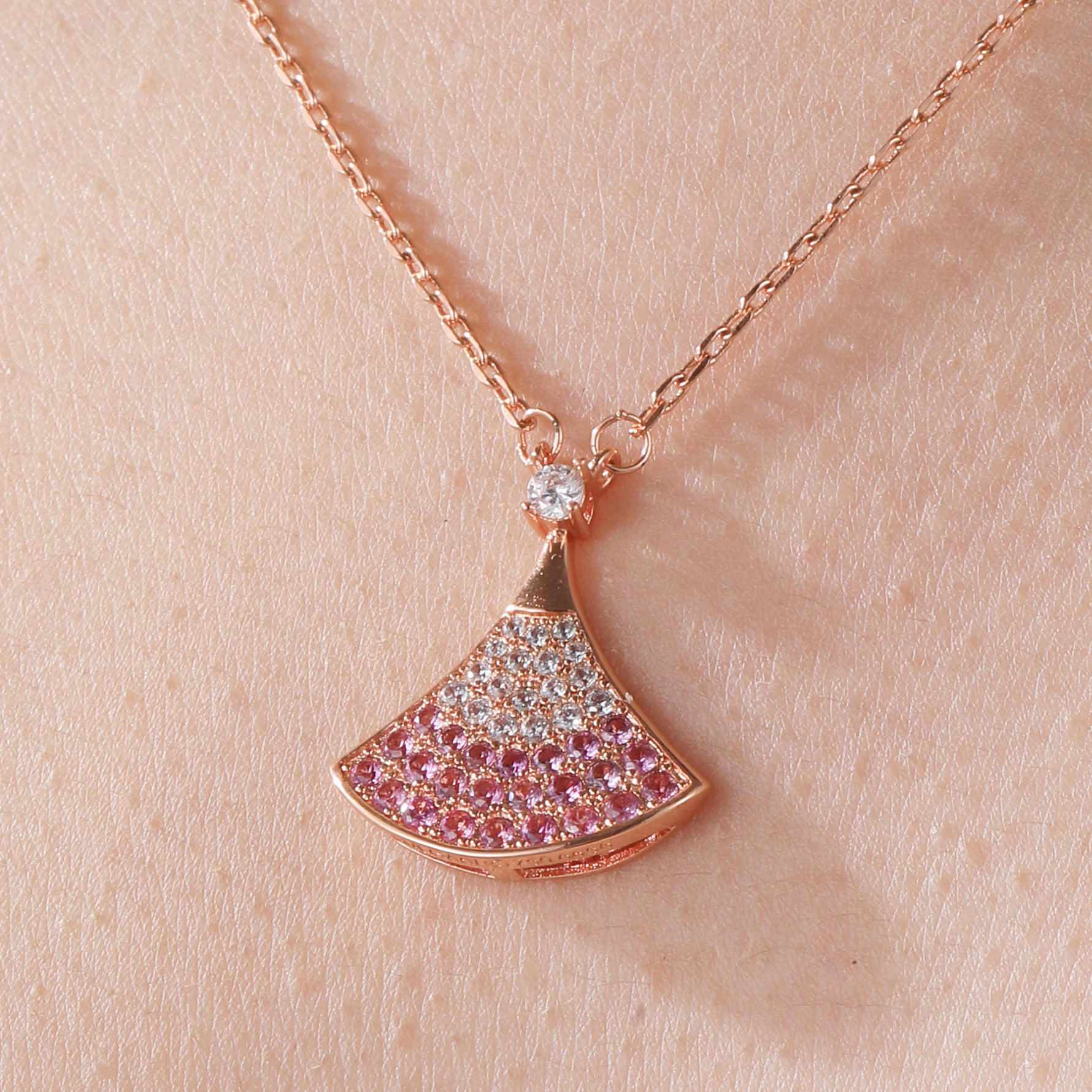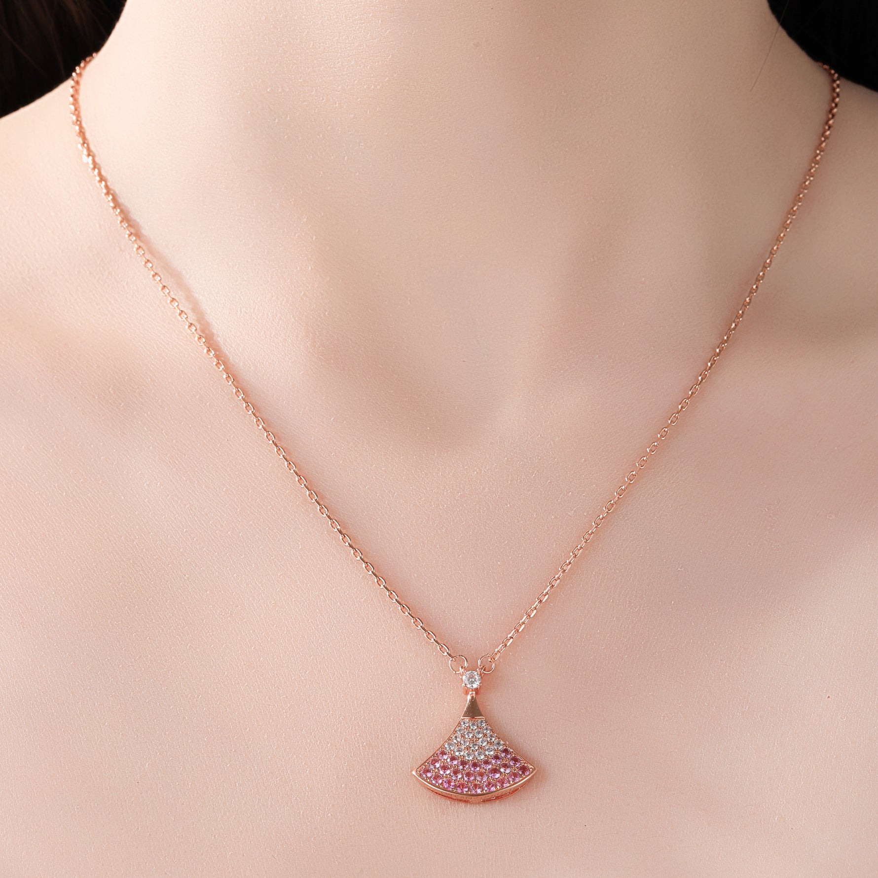 2. Elegant Fan - shaped Gradient Design: The pendant features an elegant fan shape, with a unique ombre pink design that transitions naturally from deep pink to light pink. Paired with the sparkling white cubic zirconia at the top, it resembles a blooming flower, exuding romance and a dreamy atmosphere, adding a touch of agility and softness to the overall look.