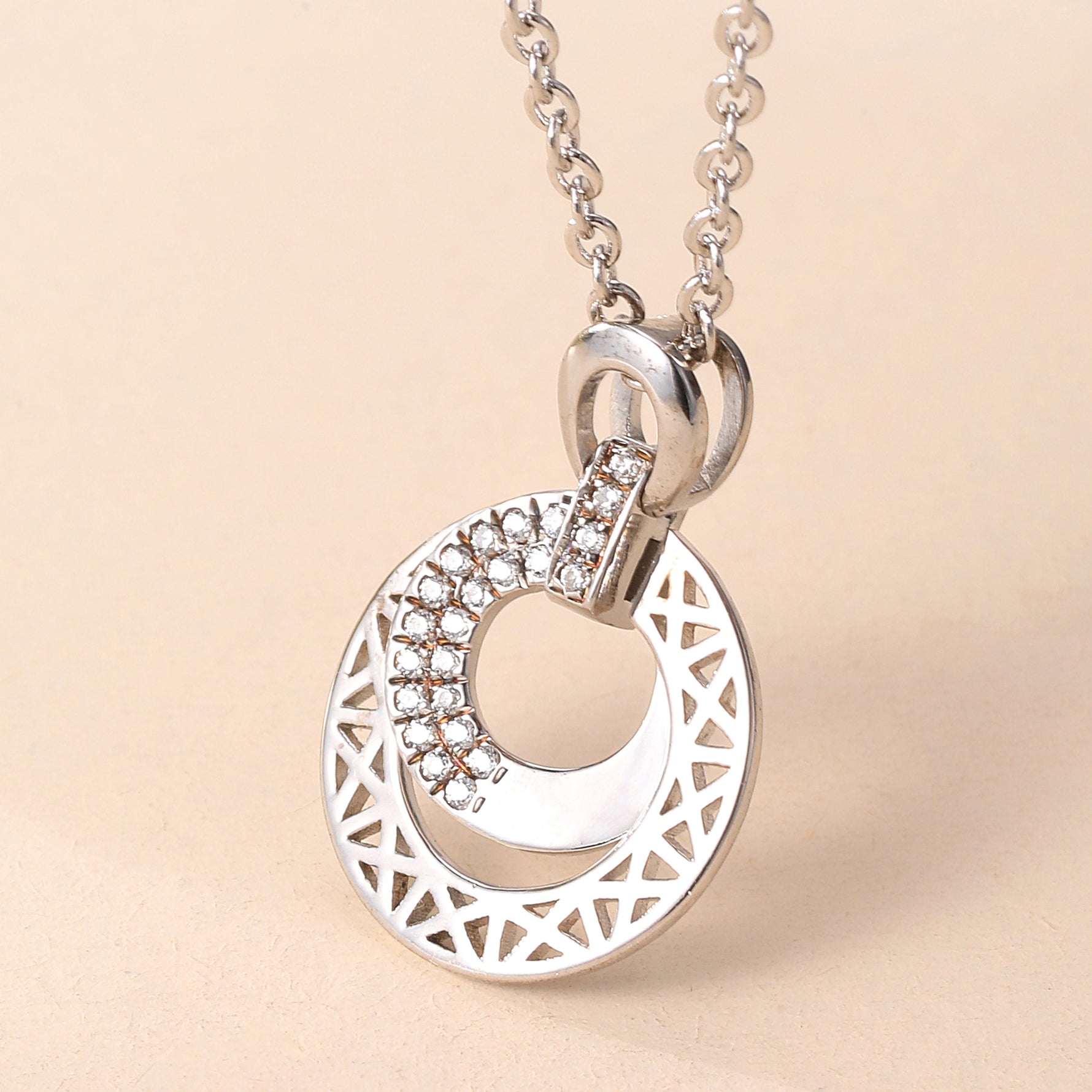 Unit price perSterling Silver Cubic Zirconia Embellished Double - Loop Logo Pendant Necklace