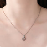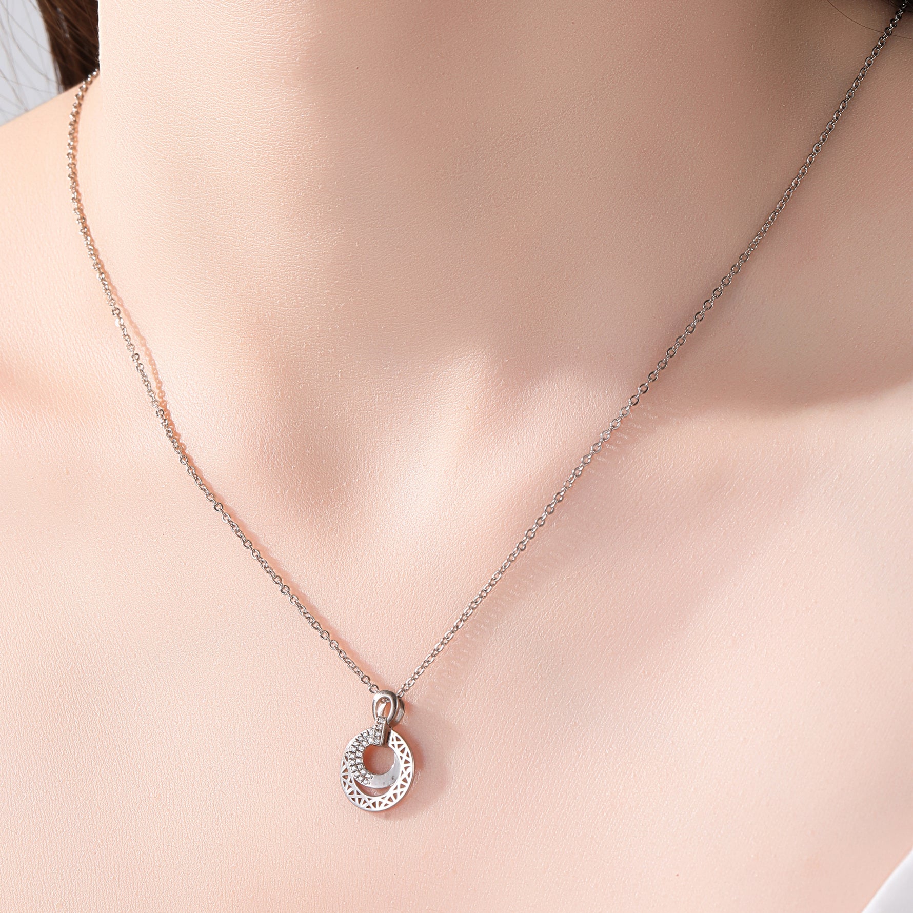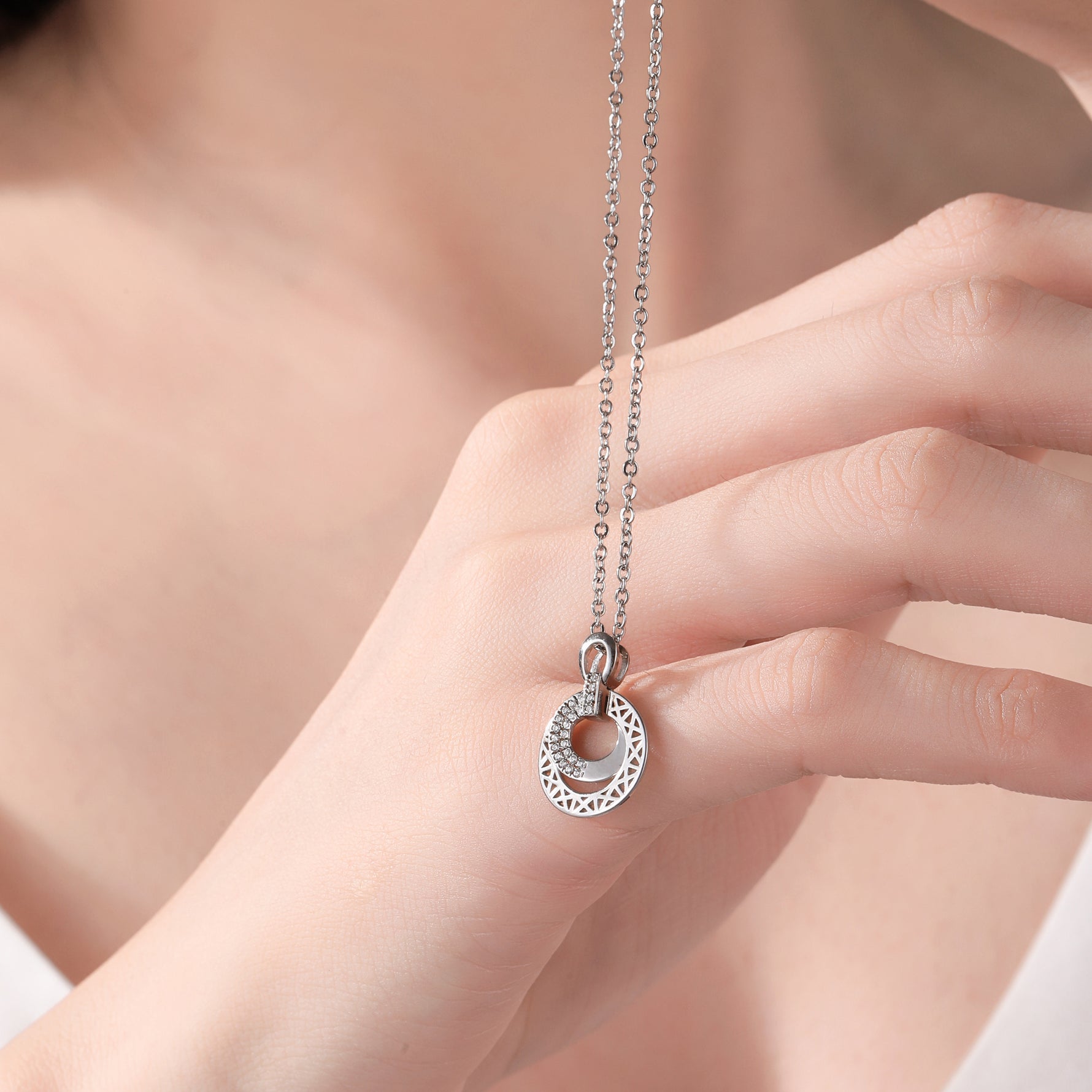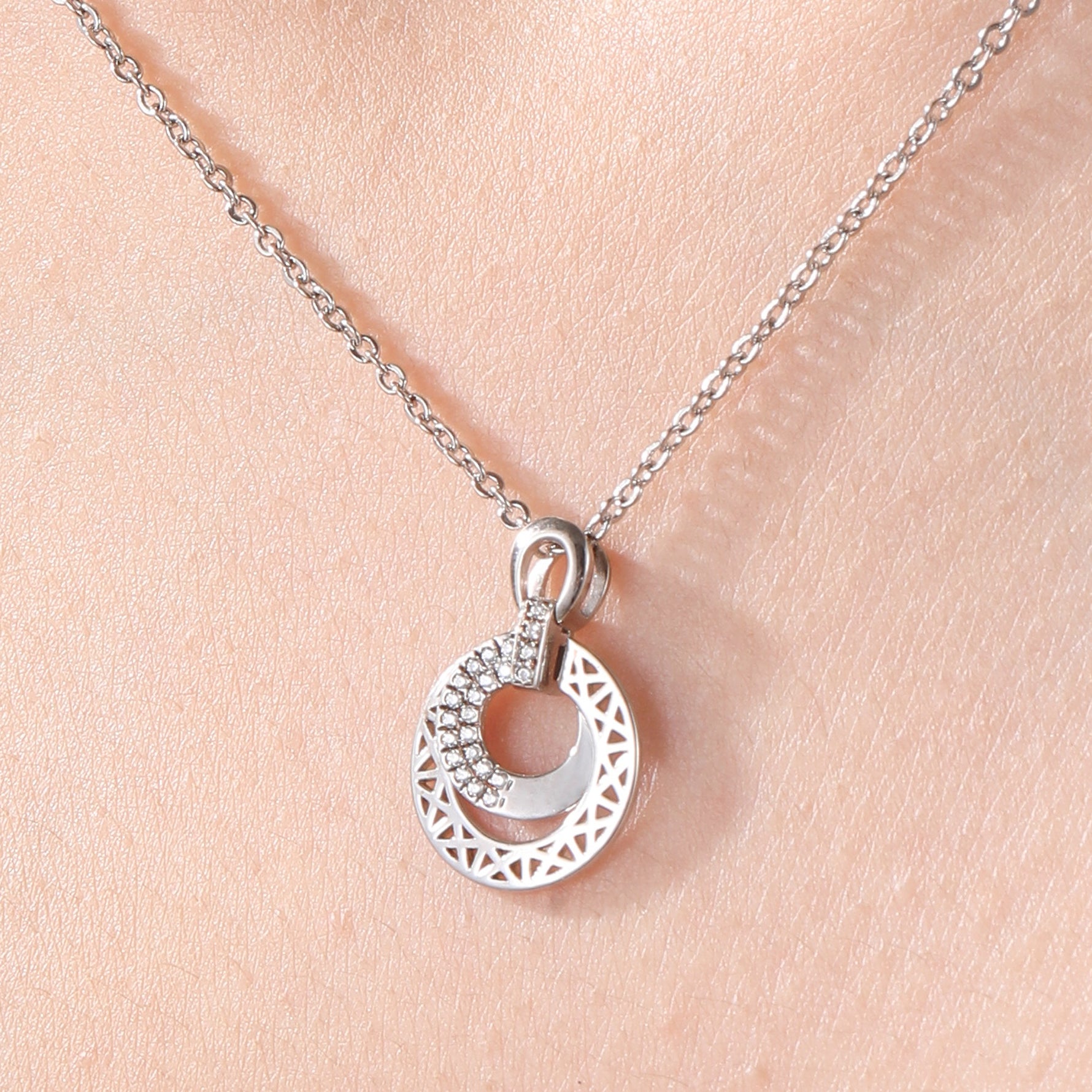Sterling Silver Cubic Zirconia Embellished Geometric Circle Pendant Necklace