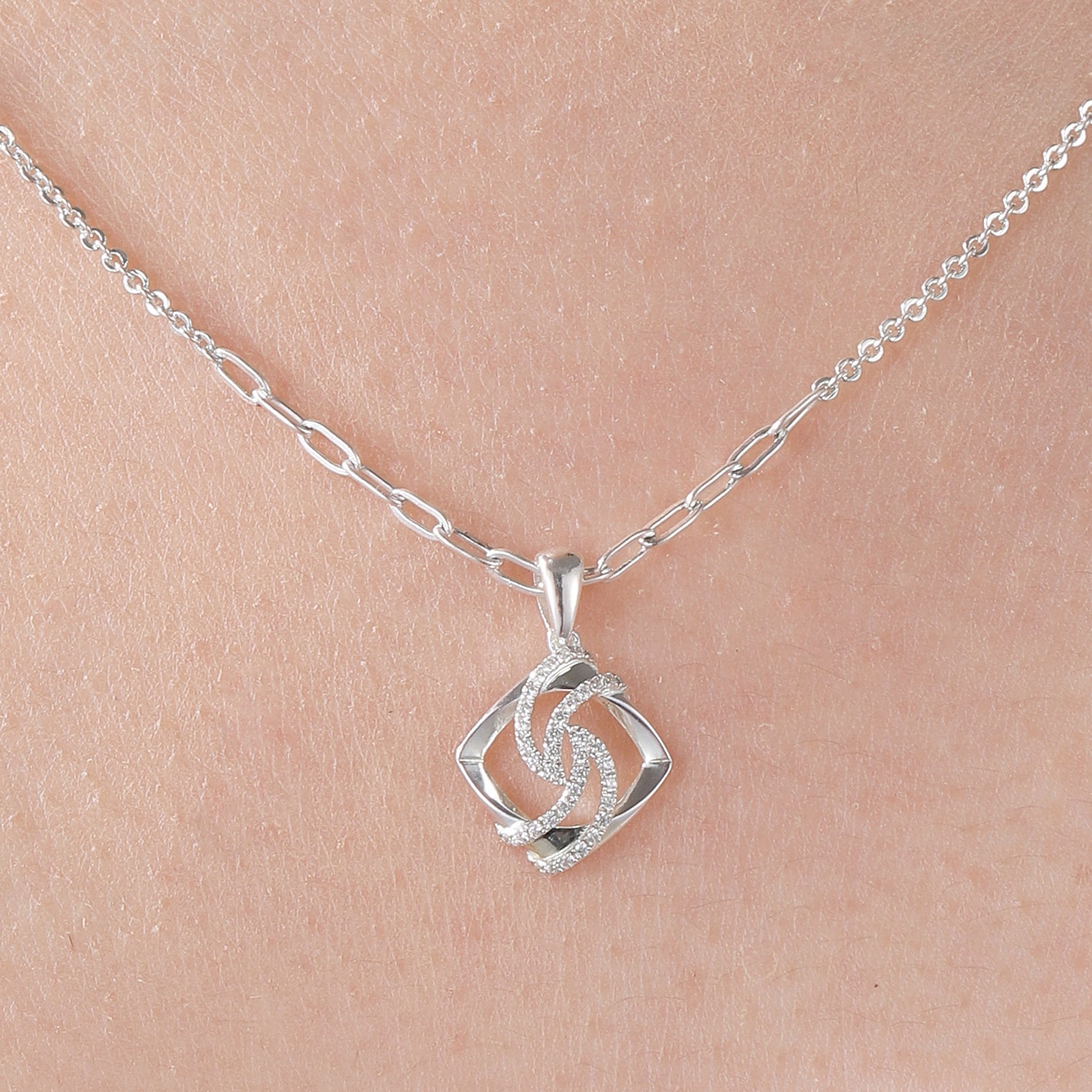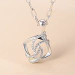 Unit price perSterling Silver Cubic Zirconia Embellished Double - Loop Logo Pendant Necklace