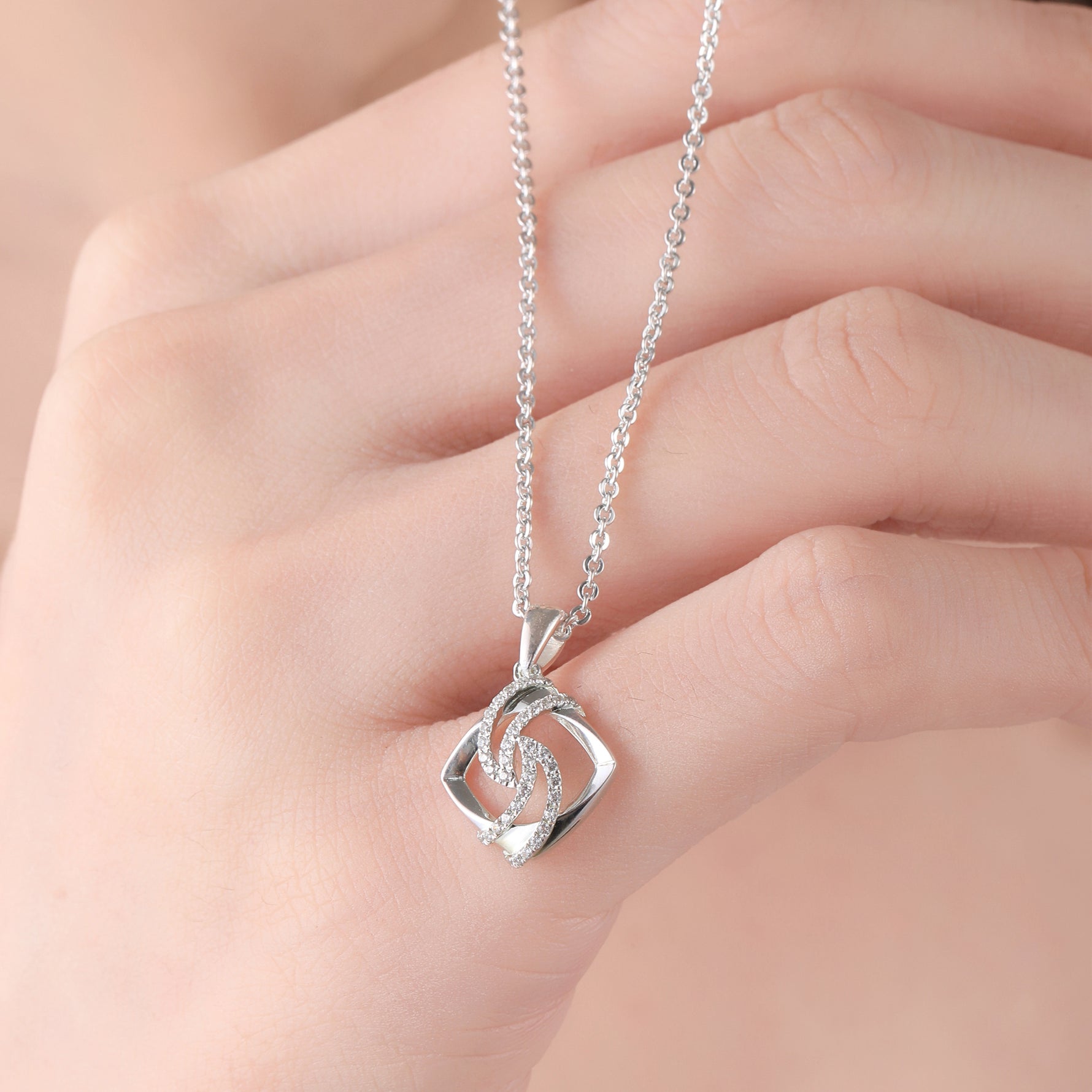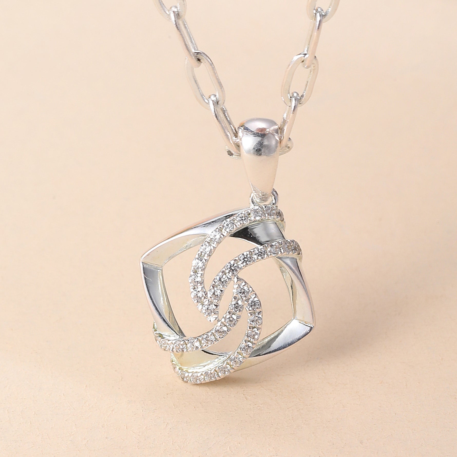 Sterling Silver Cubic Zirconia Twisted Rose Pendant Necklace