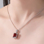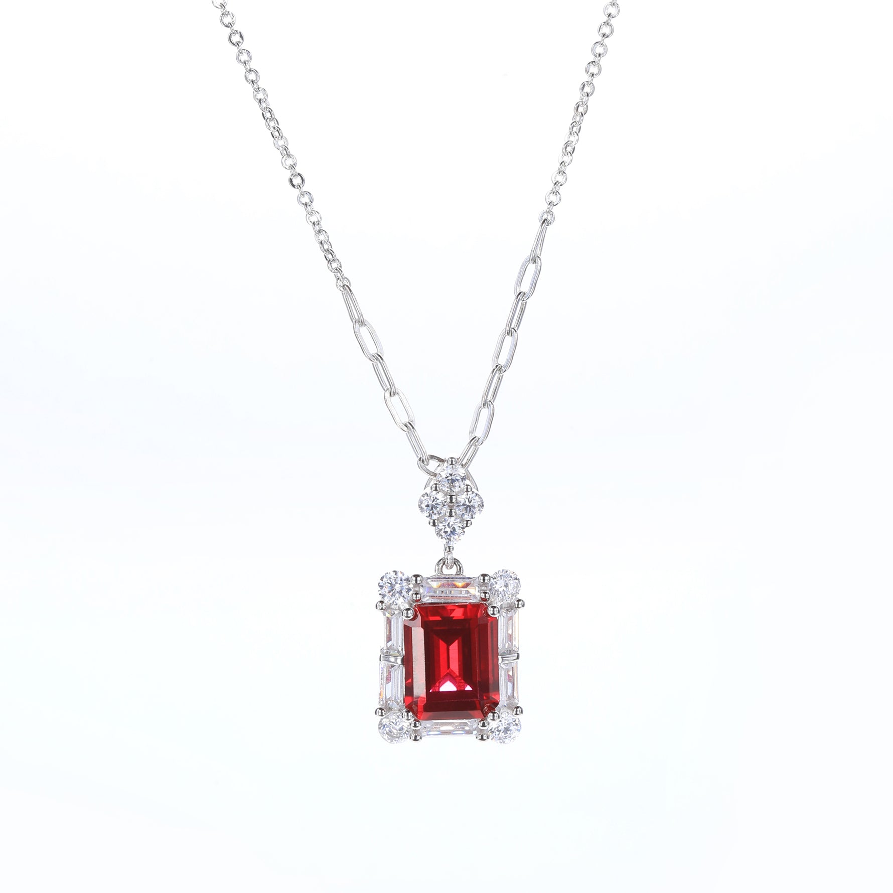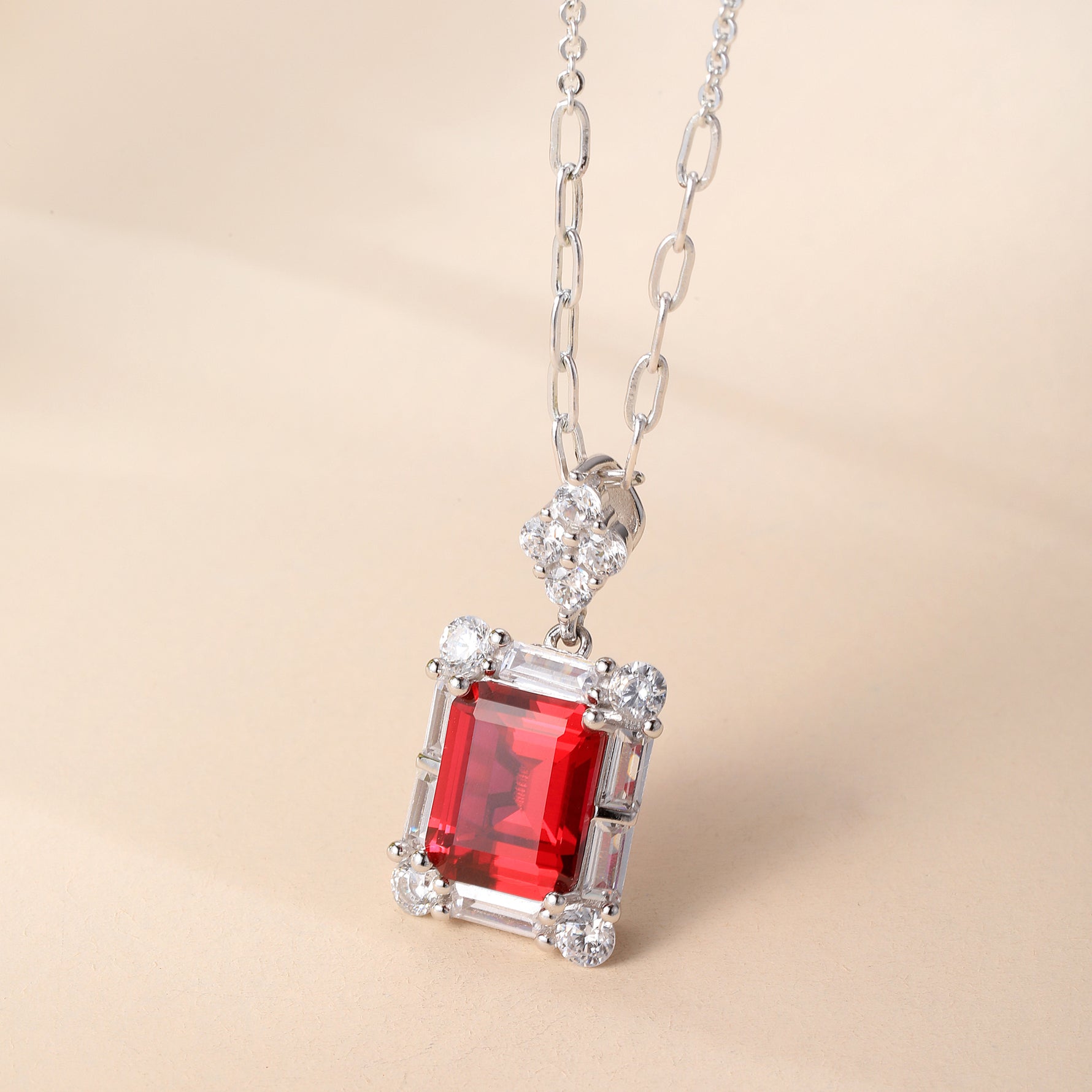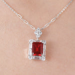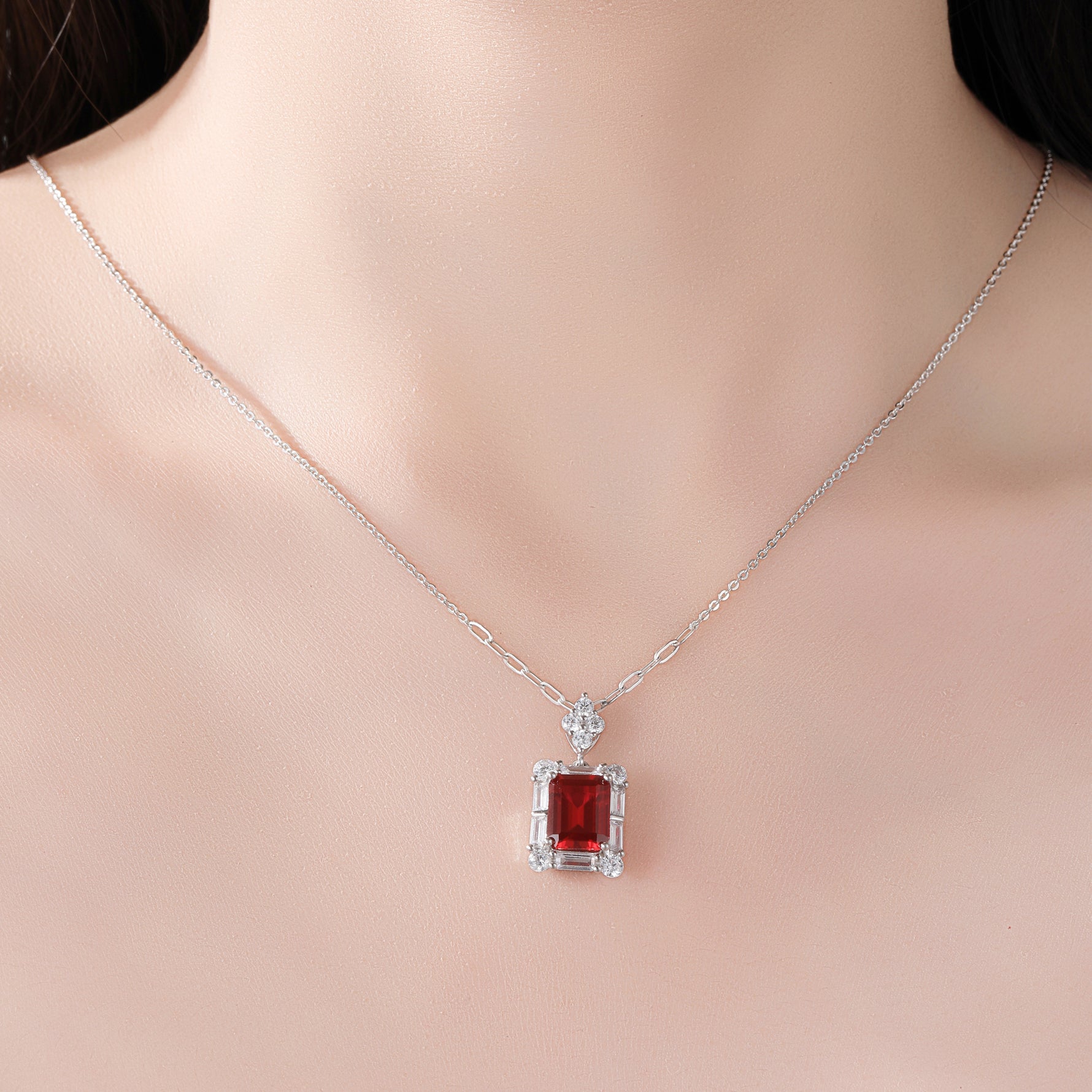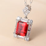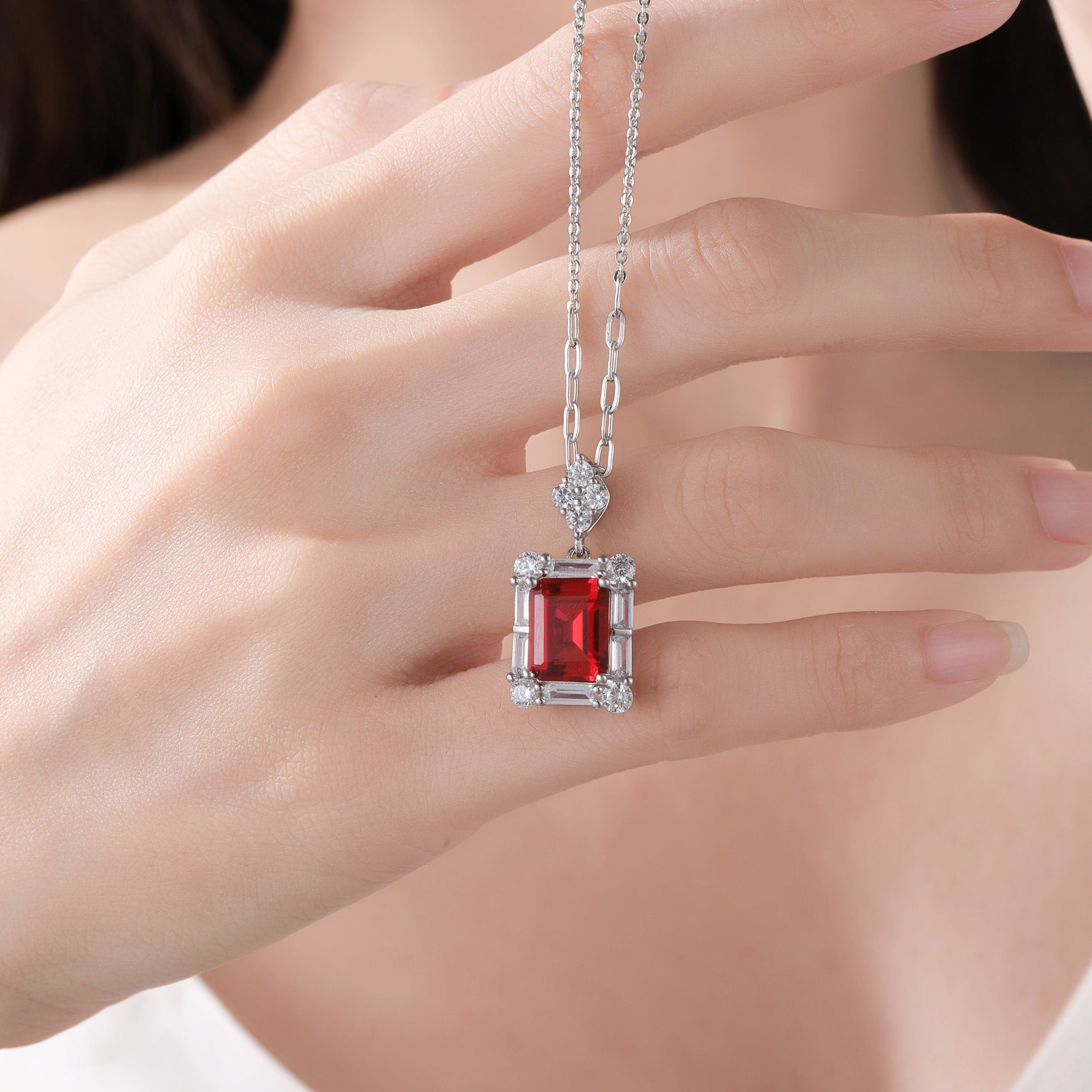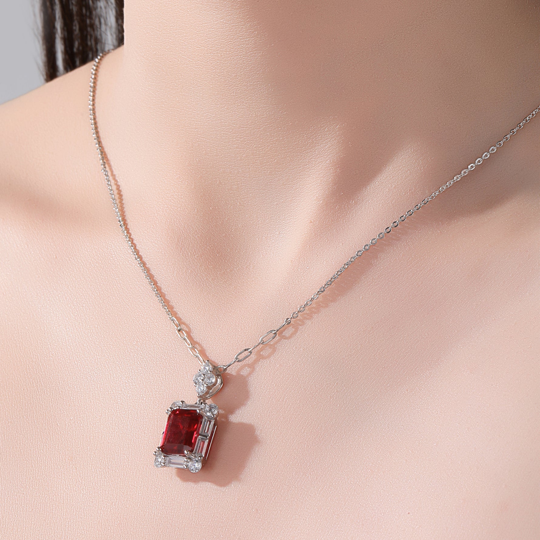 Sterling Silver Ruby - Red Cubic Zirconia Emerald - Cut Pendant Necklace