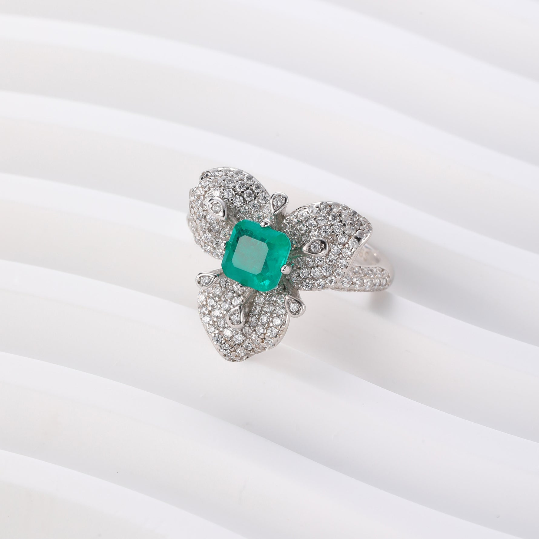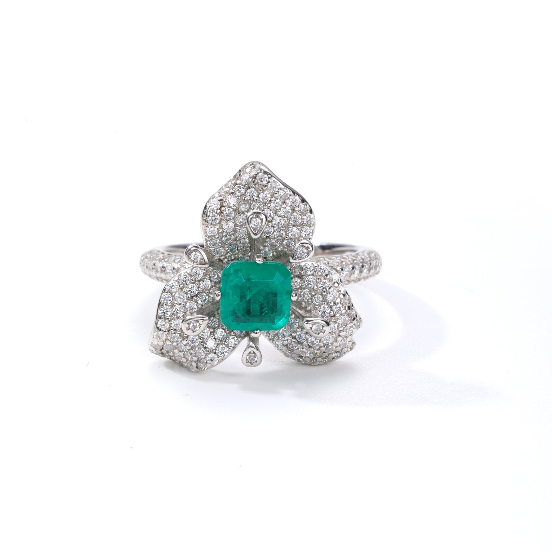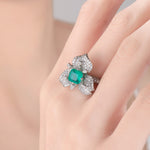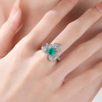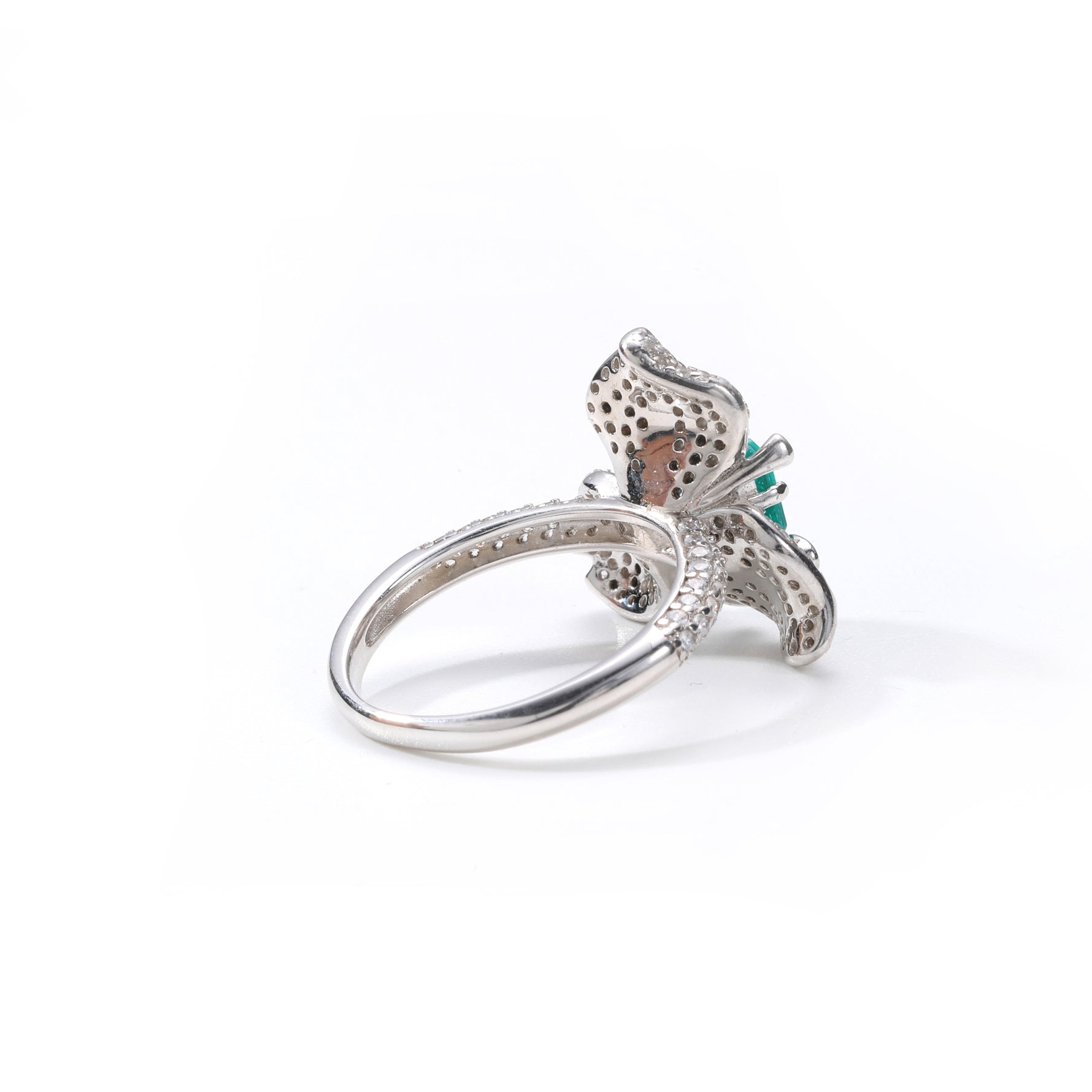 Sterling Silver Emerald - Green Cubic Zirconia Floral Statement Ring