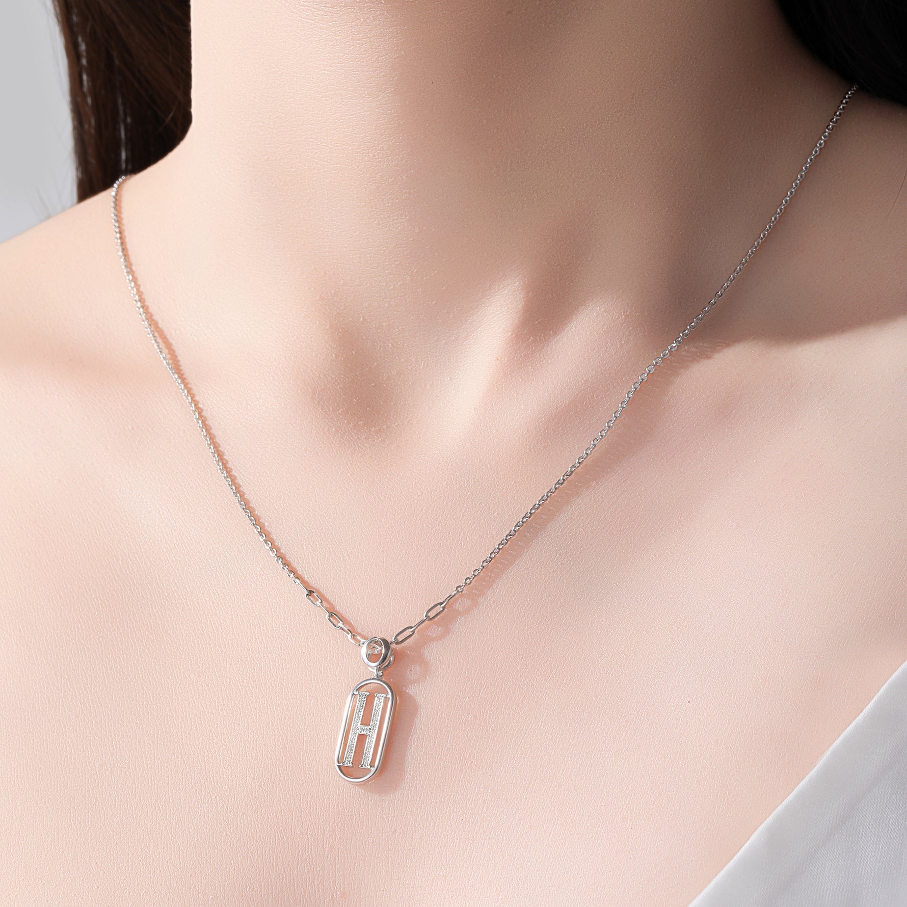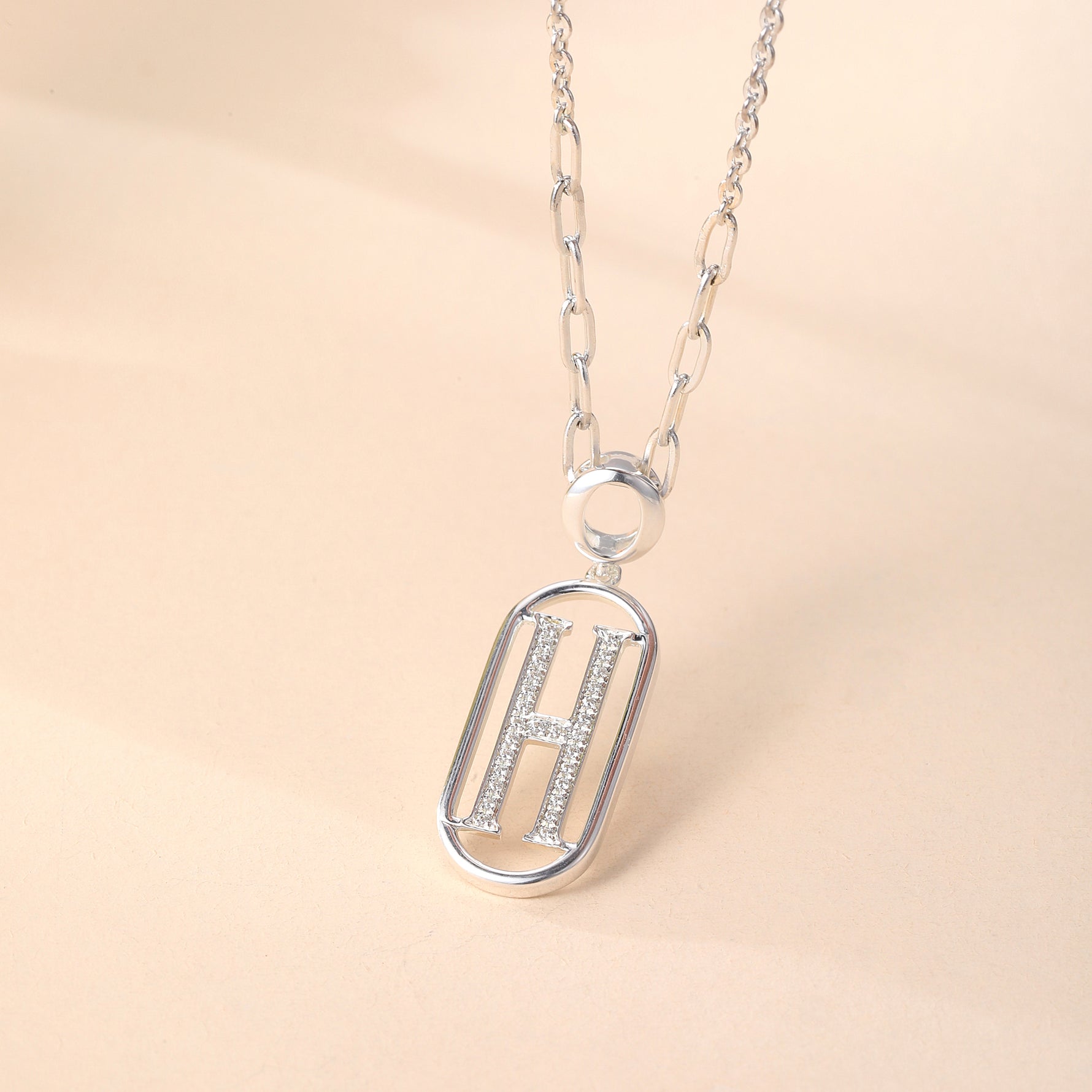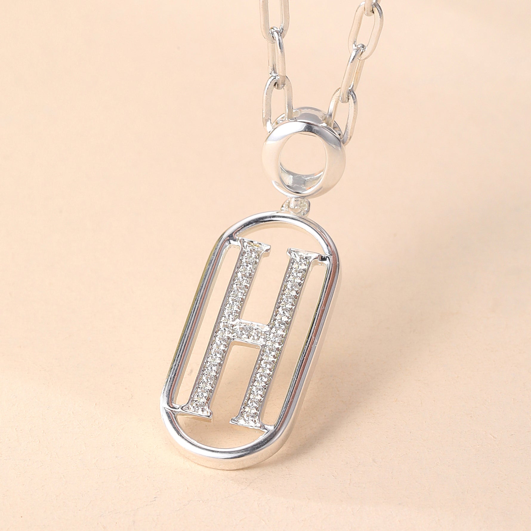 Sterling Silver Cubic Zirconia Embellished "H" Pendant Necklace