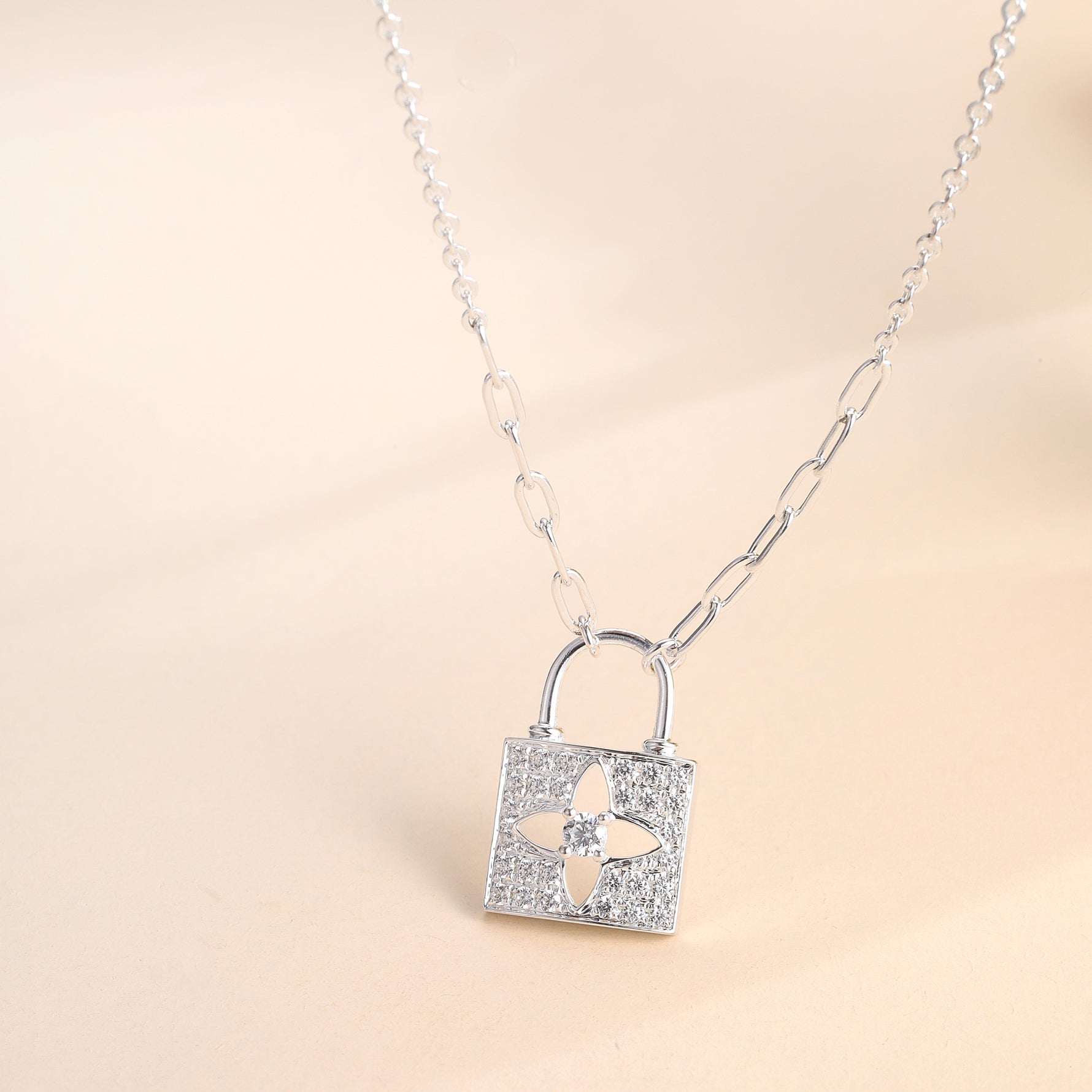 Sterling Silver Cubic Zirconia Padlock Pendant Necklace